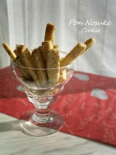 ココアクッキー(材料鉄板2枚分) 薄力粉…45g 強力粉…45g バター…100g 卵黄…1コ分 ブラウンシュガー…50g アーモンドパウダー…30g ココア…10g くるみ…40g ブランデー…適量 ~♪♪♪~ 室温に戻したバターにグラニュー糖を混ぜ、卵黄、を混ぜ滑らかなペースト状になったらブランデーを加える。 振るったアーモンドパウダーとココア、粉類をさっくり混ぜ、刻んだくるみを混ぜる。冷蔵庫で30分以上寝かした後、棒上にまとめ包丁で5mmの厚さに切り、側面にグラニュー糖(分量外)をまぶす。180℃のオーブンで20分焼く