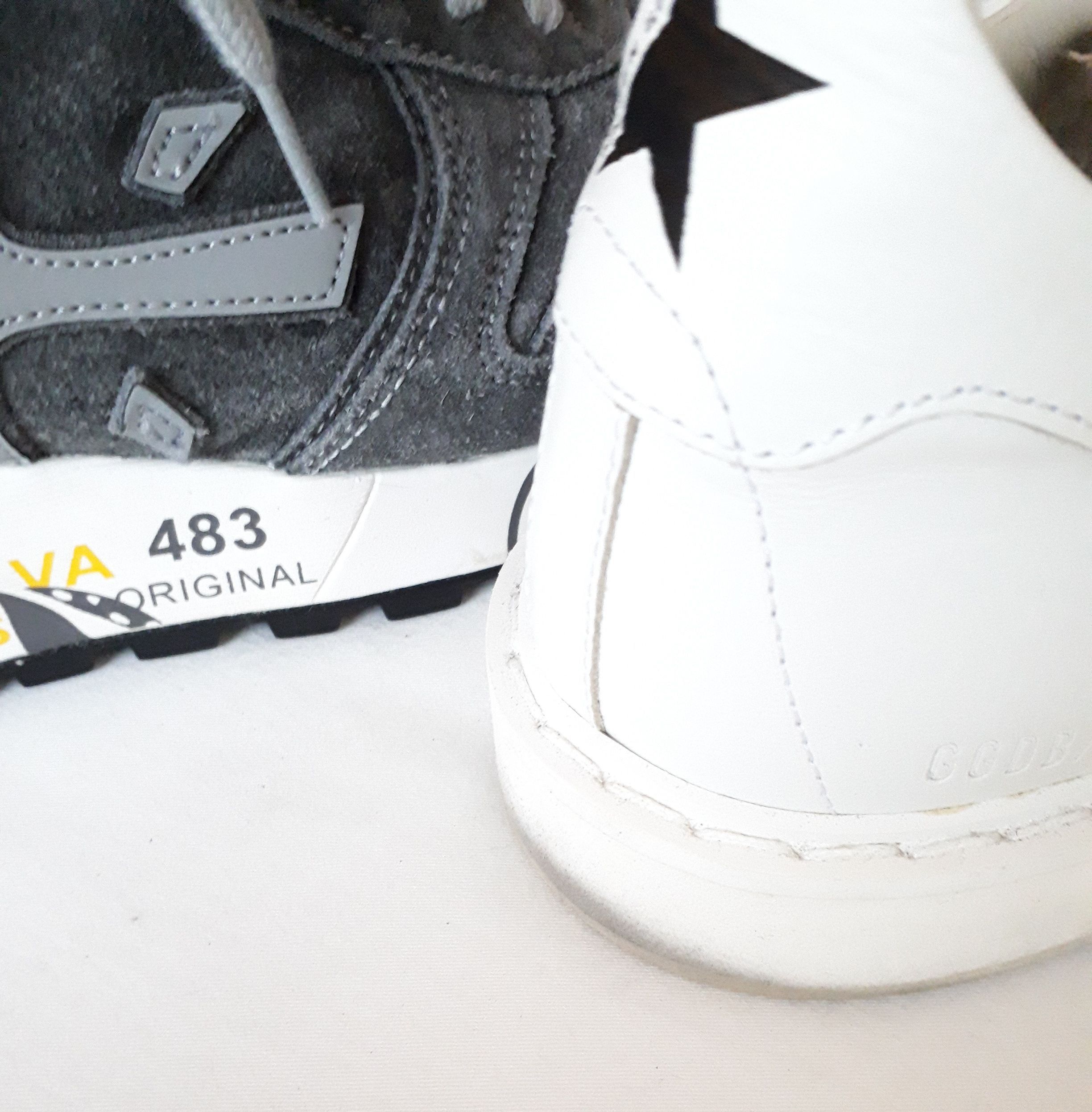 家族それぞれの「白いレザースニーカー」。