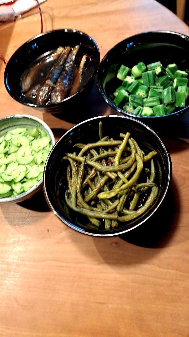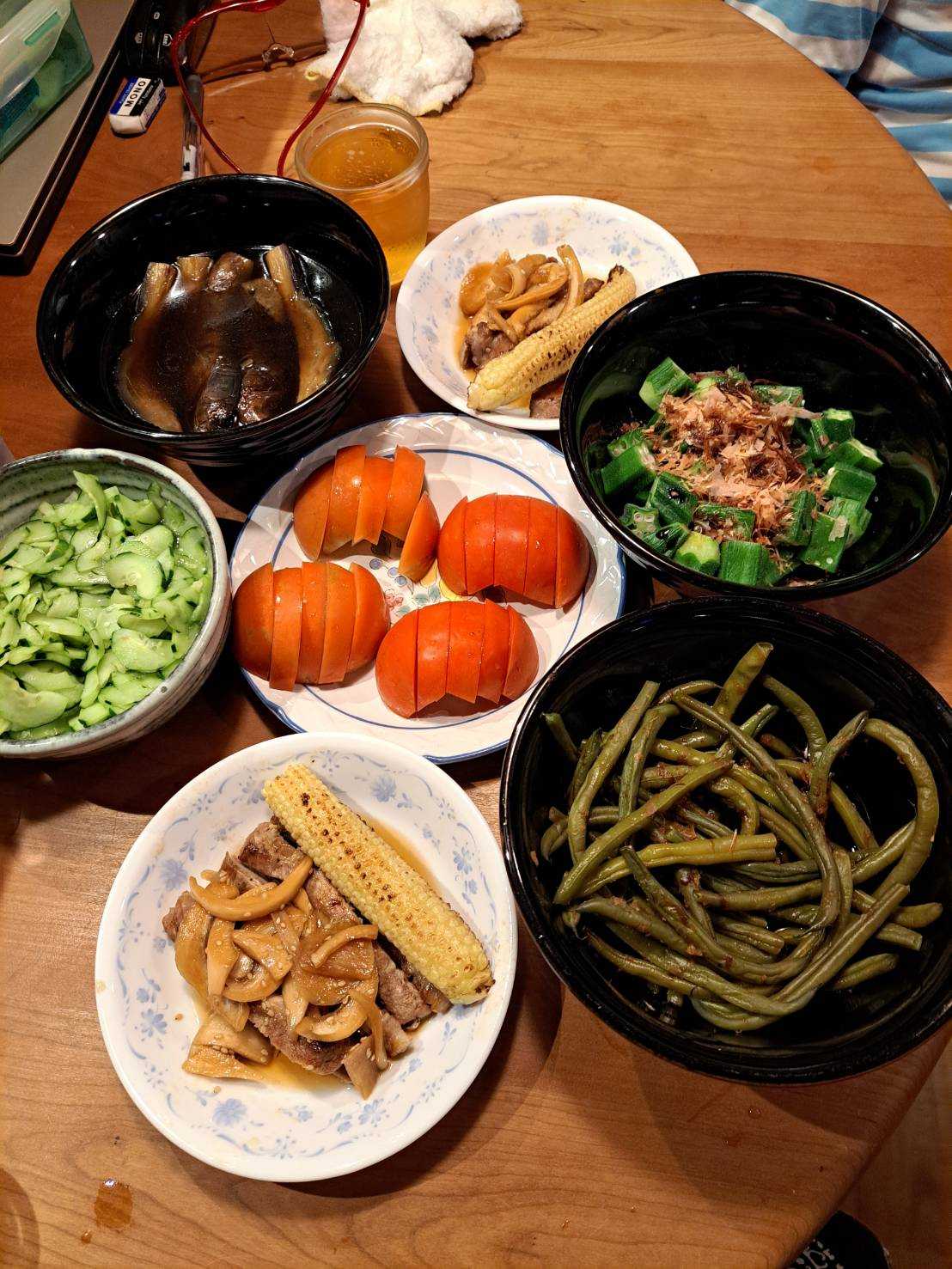 今日の未明に新潟・日光白根山・信州ドライブ車中泊一泊二日の旅から帰って来ました 旅の様子は後々に報告したいと思います まずは留守にしていた間の野菜たちです 二日間留守にしていたので、野菜たちがすごいことになっていました バカでかキューリとトマトが沢山収穫出来ました ![]() キューリは全部で4キロ近くありました 酢の物と塩漬物とキューちゃん漬けにしました 今週末に三男が来ることになったので持たせて帰る為に作り置きです トマトはこれからが収穫の本番です おそらくカラスの仕業と思える赤いトマトが5個位被害にあっていました 今の所スイカは無事です 生でサラダにして食べきらない量なので トマトは時間を掛けてピューレにして冷凍保存します ナスは煮びたしと茄子漬にします オクラは大きくなり過ぎたものは長めに湯がいてオカカ合えにして 小さめで柔らかいものは先日豚肉巻が美味しかったので明日作ろうと思います ツル無しインゲンも旅行の前に随分収穫したのにまた収穫出来たので 大きくなり過ぎたものは長めに湯がいてオカカと煮込みました 万願寺は明日焼いて食べようと思います ![]() まるで総菜屋さんのように面白味のない同じ丼ばかりです ![]() 夕食はポークステーキとトマトを添えて、、そしてトウモロコシのベビーコーンを焼いて食べました そんなこんなで野菜の下ごしらえやおかず作りや漬物作りで今日は台所に立ちっぱなしで 疲れました 収穫は嬉しいし野菜三昧の食事は健康的でたくさん食べても太りにくいので助かりますが 地味に料理に掛ける時間が長くなって大変です とにかく群馬県は暑かった、、、信州の高原最高!!! そして自宅に帰ったら勿論窓を閉めて 出かけているので家の中が蒸し風呂の中のような状態でビックリ 本当に毎日が大変な暑さですね、 熱中症に皆さまご用心ですよ~~~~ お気に入りの記事を「いいね!」で応援しよう