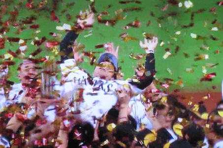 9月22日糟屋郡志免町のて鉄道記念公園内の志免炭坑遺跡を見て、本日最終目的地の福岡市百地海岸近くのソフトバンクホークスの本拠ヤフオクドームのすぐ西隣りに立つシーホークは小売業界に君臨していたダイエーが1995年(平成7)創建したものだが現在はシンガポール政府系企業が買収し、ホテルチェーンのヒルトン・ワールドワイド運営の「ヒルトン福岡シーフォーク」名のシティーホテルとなっている36階建て1,053室の巨大ホテルである。これは翌日ドーム側から撮った画像。フロントは坂を上り4階にあった。 ホテル着17時半ごろ、夕方でチェックインする客が多く手続きが済むまで15分位待たされたかな。案内されたのは26階の最西端の部屋で真下にシーサイドももちの人工海浜と博多湾に浮かぶ能古島、玄界島、志賀島が見渡せる眺望のいい部屋が用意されていて、部屋のテーブルには「金婚式おめでとうございます」が飾られたチョコレートの皿が置いてあった。夕食は18時半に決めて、26階の3部屋に分かれた。左下の島は「ウエディング アイランド マリゾン」という結婚式場 18時半から4階のブラッセリー&ラウンジ シアラ(大食堂?)で会食兼宴会。料理はバイキング方式、飲み物は一人2,000円で90分飲み放題。ビール(官兵衛ラベル)ワイン、焼酎など。料理は大してうまい物はなかった。チャンジャだけは美味しかったので何回かおかわりを取りに行った。21時20分ごろお開き。ブラッセリー&ラウンジ シアラの全景官兵衛ラベルのアサヒビールが出てきた。18時40分乾杯して開宴、いろいろつまんだがこれという味には行き着かなかった。隣りの席で行儀よくお食事中の双子ちゃん、満2歳でかわいい盛りだねえ。帰りに、ホテル隣接のショッピングモールの中のコンビニでワインとつまみを3,000円ほど買い込み僕らの部屋で2次会。これで酔っぱらってしまい、翌朝家内から嫌味タラタラのクレームが出て一悶着。二男から「ここまで来て喧嘩せんでよ」と諌められる始末。楽々苦楽...の謂である。