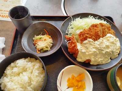 大きな道路沿いで看板も目立ち、名前は知っていたものの初訪問。 ランチは混むと聞き、開店時間に合わせて行ったところすでに満席。 5分遅れた人たちは30分ほど待っていた。 人気の理由は安さとボリューム。 焼肉とヒレカツのセットは1100円、タルタルチキンカツは1000円以下(税込)。 ご飯の量も多めなので女性は小でも十分。 不景気な時代にありがたい、庶民の味方のお店。 味も良く大満足。 お気に入りの記事を「いいね!」で応援しよう