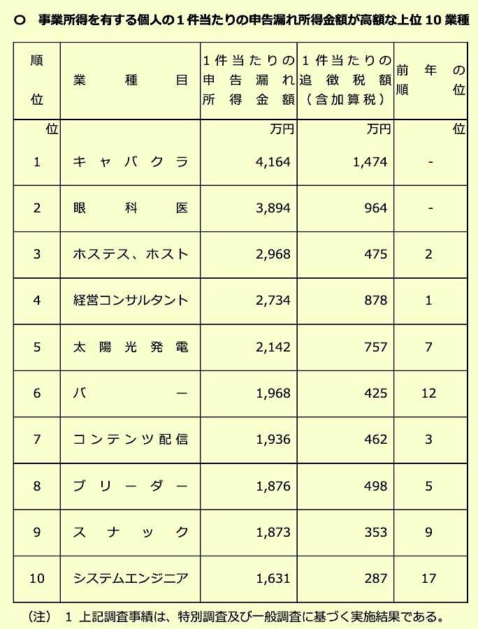 個人所得税”申告漏れ”ランキング、第…