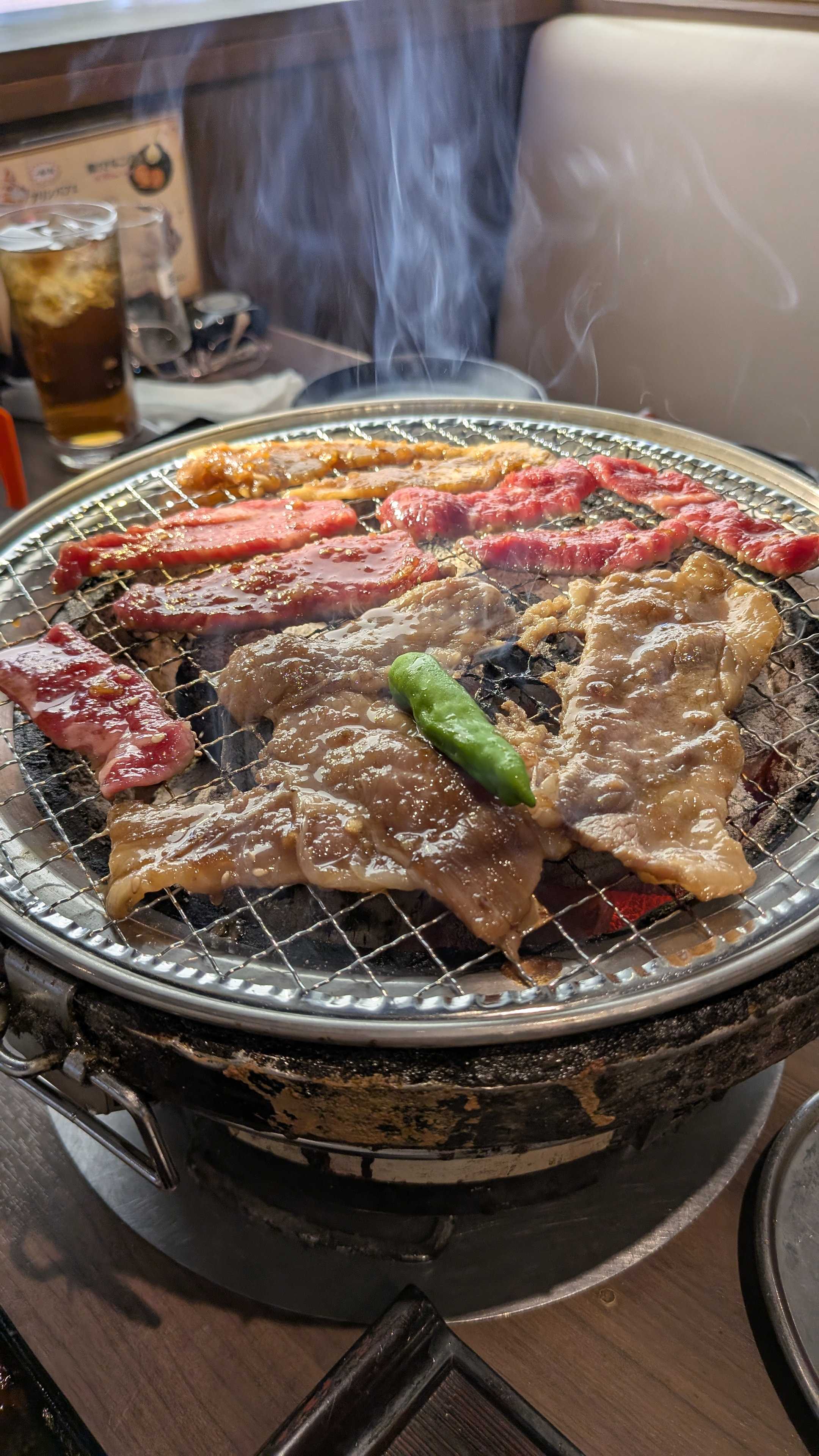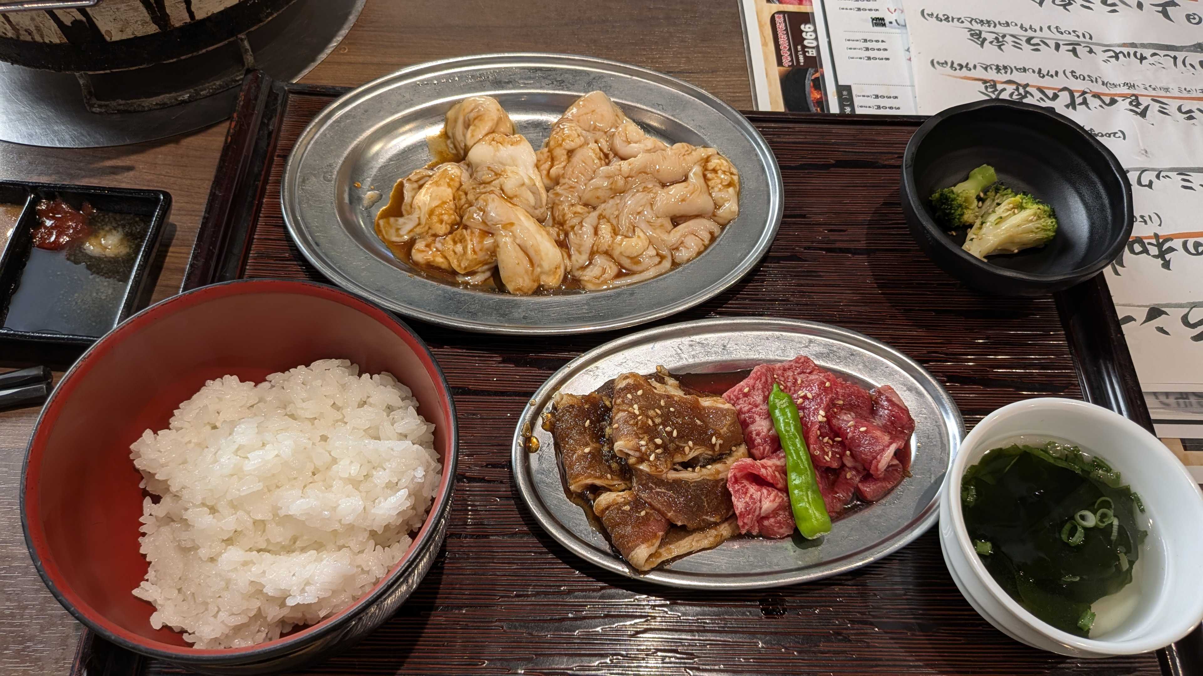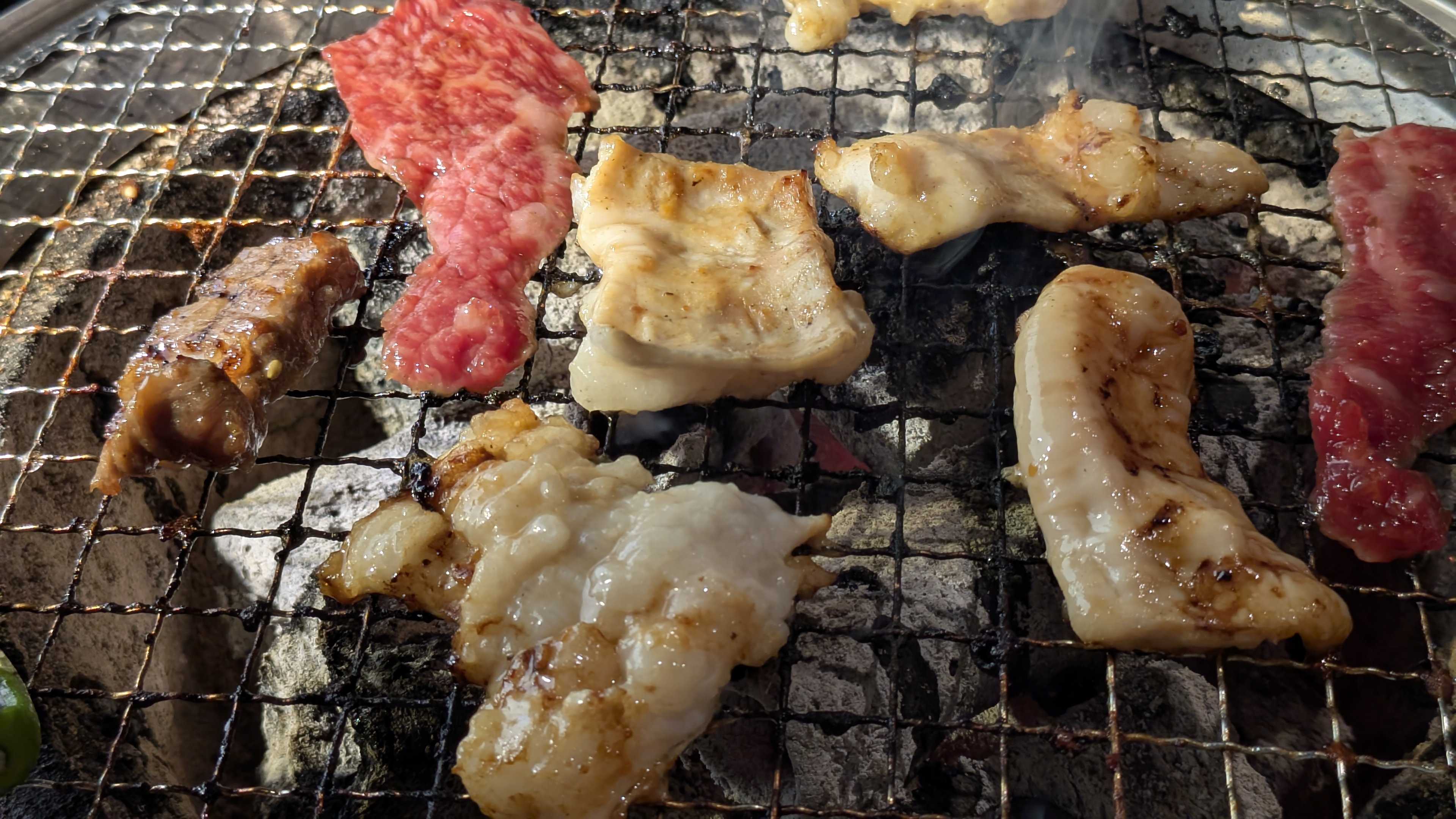 昼はご近所の大衆ホルモン 『ホルモン喜八』へ ![]() たくさんのお客さんで賑わってるが駐車場が広く安心 ![]() 子連れの家庭にも優しい ![]() さてさて、何にしようかな? ![]() ここは昼夜とも烏龍茶は何杯でも無料 福井県産コシヒカリ、おかわり無料 有り難いお店 で、ダブルカルビ定食に決めた♪ 【りんごカルビ・きはちカルビの 100g 1,290円 】 シマチョウ・トロホルモンも単品追加 もちろんビールも♡ 炭火が運ばれてくる ![]() お肉、到着! ![]() 焼き焼き開始 ![]() りんご漬けのお肉は特に柔らかく甘い ![]() お奉行、ホルモン大好き♡ ![]() キムチが本格的で旨い! ![]() いや〜お腹いっぱい♪ 汗をふきふきしてると店員さん、おしぼりを3枚持ってくれた 何と親切♪ さて、帰ったら昼寝しよ⋯zzz . お気に入りの記事を「いいね!」で応援しよう