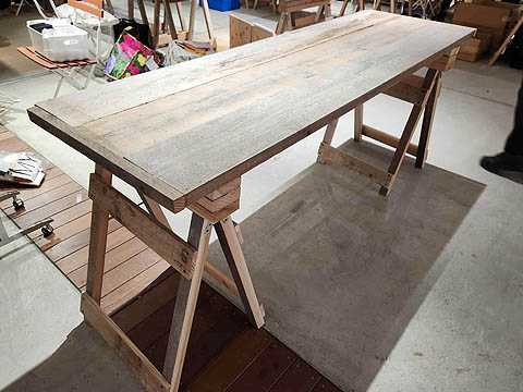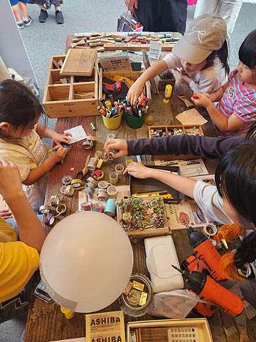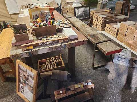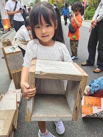スタッフの高畑です。 10月10日~13日にかけて天王洲アイルの寺田倉庫を中心とした一帯で 【MEET YOUR ART FESTIVAL 2025】 というエイベックスさん主催のアートフェスティバルが開催されました! WOODPROはご縁もあって会場のいたる所に板材やテーブルを提供させてもらいました。 その量、なんと4t車2台分! スポンサー枠としてスペースもいただき、4日間ゆっくりお客様と交流をはかれました。 早速ですがまずは会場の紹介から! 今回会場に納品したのは通常であれば工事現場でまだまだ活躍できる現役の足場板とワイルドグレードとキャラクターグレードです。 こちらは会場の什器とアートエキシビションの会場に。 ![]() 敢えて板と板の間に空間を持たせることでスタイリッシュな仕上がりに。 うちの工場では外で板を保管する時に雨で濡れた材料が乾きやすいよう隙間(風の通り道)を開けるのですが、工場の敷地内で見るそれとはまた違った雰囲気に感じました。環境の違いってすごいですね。 別棟のアートエキシビション会場にはライブや映像をいろんな角度からゆっくり鑑賞するための場所が製作されていました。 ![]() 作品を展示するステージに ![]() 鑑賞用のベンチに ![]() 床や階段に ![]() 薄暗さとどこか無骨な雰囲気の足場板や躯体が作る空間に、光と音を存分に味わえるアートな展示作品たち。雰囲気にのみ込まれそうになりました。 続いてはマーケットエリア。 ![]() ![]() 今回オーダーで製作したテーブル脚の上に、使い古した杉足場板を3枚並べて両サイドを棒材で連結しテーブルに仕立てました。 マーケットエリアの出展者さんが使うテーブルとして活躍しました! ![]() 60台のテーブルの上に、個性豊かなアートグッズや雑貨が並んでいる光景は見ていてワクワクしました! 一度のお昼休憩だけでは到底回り切れない。 ![]() 他にも、会場のいたる所で足場板が大大大活躍でした! 続いてはWOODPROブースの紹介。 ![]() 今回は主に2種類のワークショップを行いました(^^)/ ![]() 一つ目はキャラクターの濃い素材を使ったラックづくり。 アートのイベントという事で、普段ネットショップでは取り扱いが難しいペンキやサビが付着したものをあえて持ち込んでみました! 一枚一枚味わいの違う板の中から好みの素材を選んで組み立てられます。 ![]() ![]() 小さなお子さんでも完璧なラックを作ることができました♪ ![]() 二つ目は古材の端材で作る蝶ネクタイづくりのワークショップ。 マスキングテープやペンを使ってデコレーションをします。 お洒落なパパとママのお子様たちに大人気でした! ![]() ![]() 皆さん個性的な自分の世界を沢山見せてくれました!! 柔軟な発想をされるお子さんの参加が特に多かったので「そこにそれ使うんだ!」とか「なるほどね!?」となるような学びが多く、私も創作意欲が掻き立てられました(*^^*) ![]() ちなみに、ワークショップスペースのテーブルやベンチに使っているボリュームのある足場板は以下の商品です。 ▶【造船所の足場板 2M】 通常の足場板よりも分厚くて幅広、さらには使いこまれた雰囲気もある素材なので1枚でどっかりとベンチの座面に使ったりするのもオススメの素材になってます! 普段参加するイベントとはまた違った印象でしたが、足場板を知る良いきっかけになってくれたのではないかなと思います。 ではでは、またの機会にお会いしましょう! お気に入りの記事を「いいね!」で応援しよう