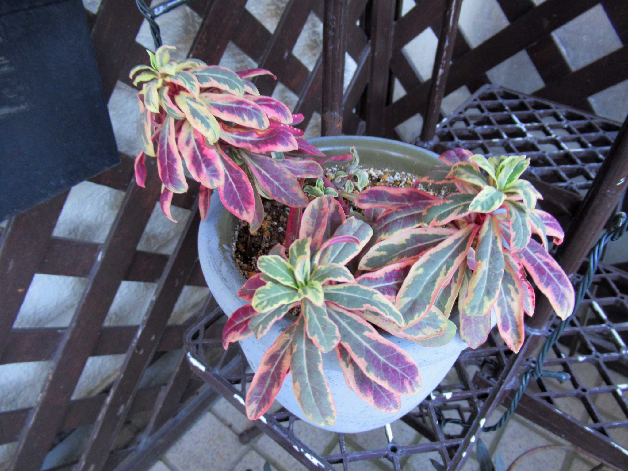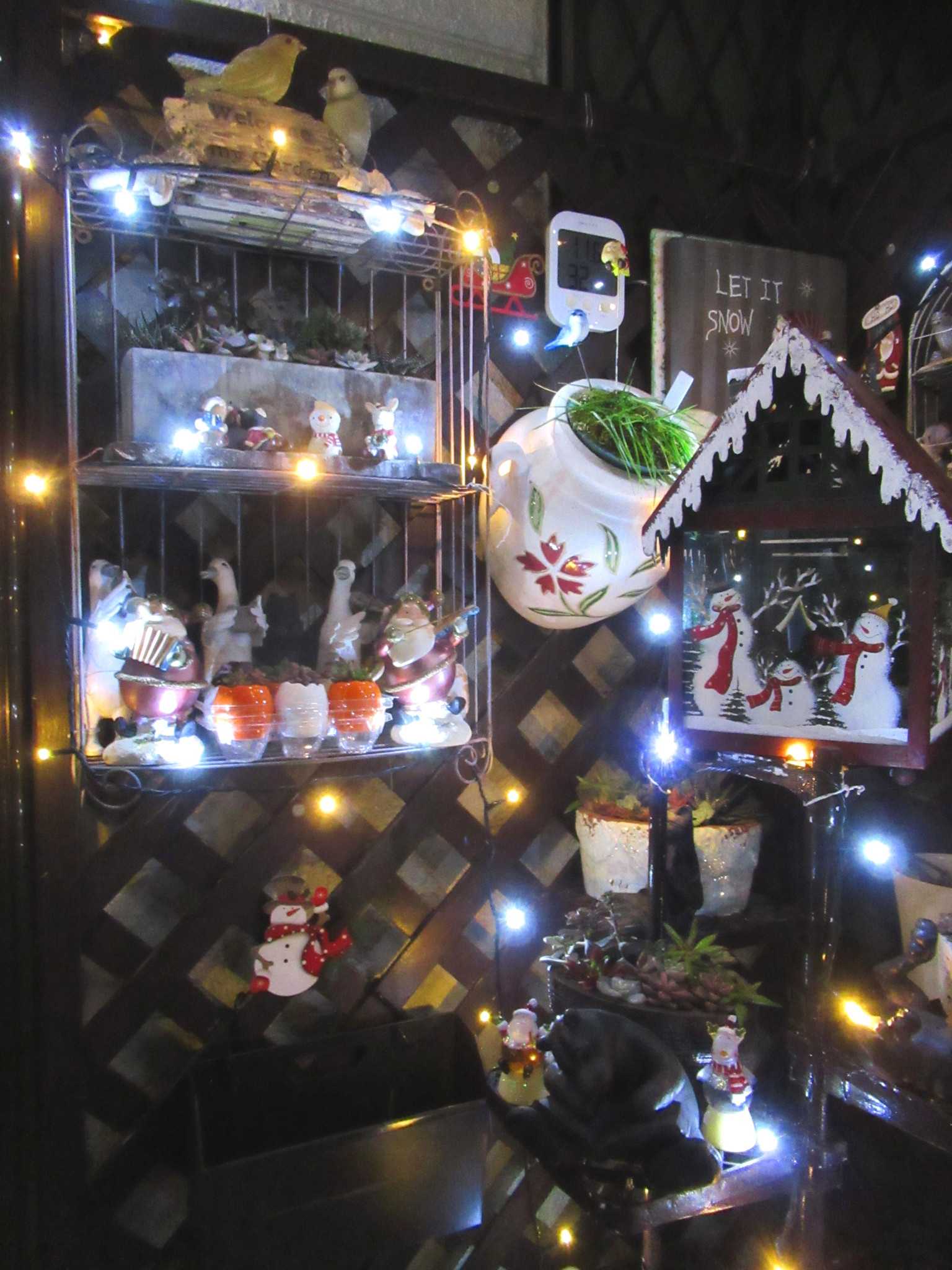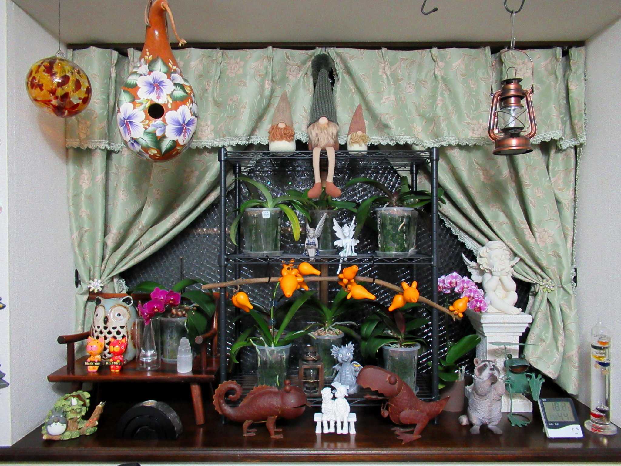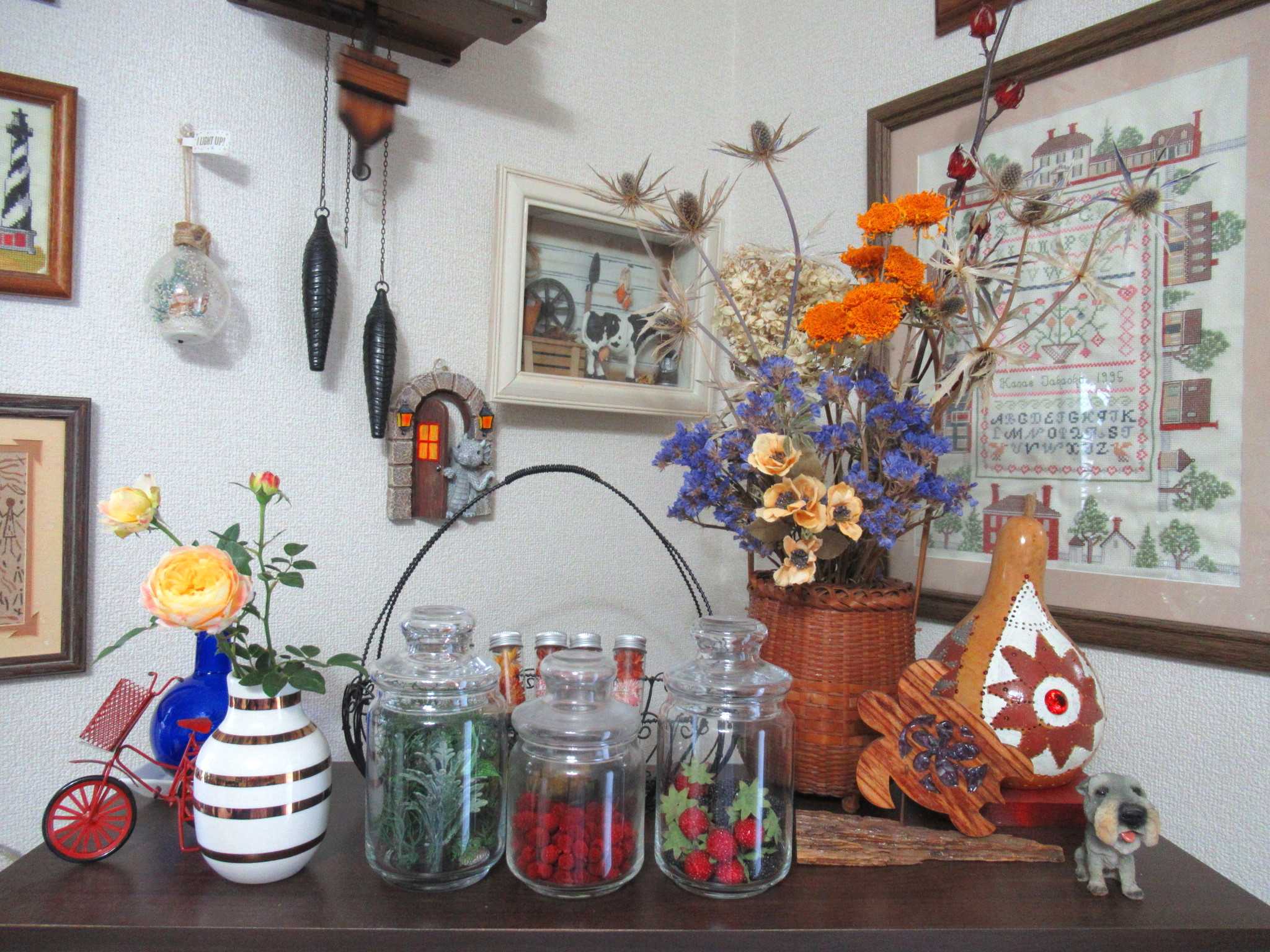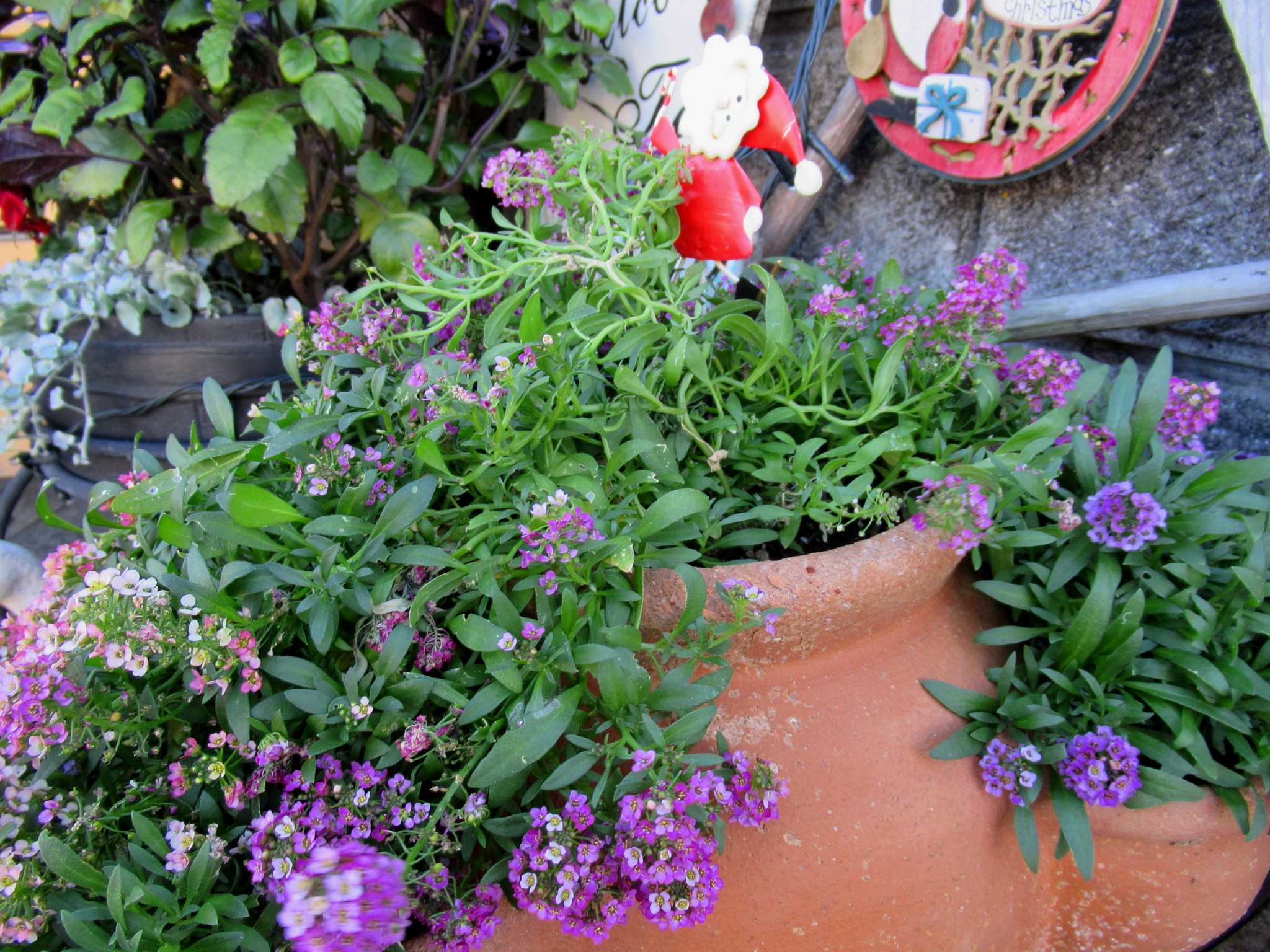 ![]() 今年の藤ツルリース第3弾は夏に育ててドライフラワーにした帝王かいざいく(リンクあり)が残っていたので速乾ボンドをたっぷり使って貼り付けてみました~n(..;)m? ![]() 花が入ると春だね~n(..;)m♪ ![]() 空いているところにはドングリやシャリンバイの実を張り付けてありますよ~n(..;)m? ![]() 渋い色のリースにピンクの花が映えるでしょ~明るい春を思わせるお正月リースもいいかも~n(..;)m♪ ![]() 寒くてもベランダは日差しがあたって野菜がすくすくと育っています・・・n(..;)m? ![]() サラダかぶのプランターでは~n(..;)m? ![]() さすが二十日大根と呼ばれるだけあってラディッシュが赤いかぶを付けていますよ~n(..;)m♪ ![]() サンチュは毎晩晩御飯の添えになってます・・・n(..;)m? ![]() スナップエンドウもすくすく育って花芽らしきものも付いてきましたよ・・・n(..;)m? ![]() サニーレタスはお店のレタスよりも柔らかくて美味しいらしく・・・ジージがランチのサンドイッチに挟んで食べてます・・・n(..;)m? ![]() 玄関わきに置いていたプリンセチアは日差しが足りないのかなかなか色付が進まないのでここに持ってきました・・・日差しと気温差が色付に関係してますよね~n(..;)m? ![]() 2階和室では・・・冬越しの植物たちが気持ちよさげです・・・n(..;)m? ![]() ここは日差しがあって温室みたいなので八福神(リンクあり)はどんどん花を咲かせていますよ~n(..;)m? ![]() 斑入りピンクも~n(..;)m? ![]() 赤も・・・n(..;)m? ![]() 温かいせいか下から葉っぱが出始めました・・・n(..;)m? ![]() リビングの出窓では~n(..;)m? ![]() かにゃかにゃバーバが失敗して茎を折ってしまった濃い赤紫の中輪コチョウランが切り花になっても元気に開花をしています・・・n(..;)m♪ ![]() 暑い夏だとこうはいかないんだろうけれど・・・切り花延命剤で充分蕾も開花できるみたいです~n(..;)m? ![]() 我が家の切り花延命剤(お花が長生きする栄養剤)(リンクあり)はこれです・・・n(..;)m? ![]() 折れた時は3輪ぐらいしか咲いていなかったのに今は6輪まで咲いていますよ~切り花延命剤のおかげですね・・・n(..;)m♪ ![]() そうこうしているうちに・・・他の胡蝶蘭たちもバルブを伸ばしてきています・・・n(..;)m? ![]() これも・・・そろそろ支柱をつけて向きを整えてあげないとね・・・くれぐれも折らないように気を付けて・・・n(..;)m? ![]() 庭で偶に咲いているバラも切り花にしてここに生けてます・・・n(..;)m? ![]() このバラはクロードモネちゃんでしたね~n(..;)m? ![]() なかなか咲かないけれど涼しいとしっかり花びらが増えてカップ咲きになるみたいですね~n(..;)m? ![]() 玄関ホールでは~n(..;)m? ![]() 夏の間にリビング窓でドライフラワーにしたセンニチコウが今年のカゴを完成させています・・・塗りなおしてリニューアルしたガーデンアニマルたちもクリスマスまではここでウェイティング・・・n(..;)m? ![]() 去年の冬の間に作ったドライフラワーたちもちょっと色あせてきたかにゃ~今年もドライフラワーになりそうな花を見つけたら買ってきて吊るしておかなきゃね~なんといっても猛暑の夏が長くなってしまって生け花は持たなくなったからドライフラワーは必須よね~n(..;)m? ![]() さて~、今日のかにゃかにゃガーデンは気温は低いけれど澄みきった晴天です~n(..;)m? ![]() エントランスの~n(..;)m? ![]() 昨日の最高気温が11.5℃・・・いよいよ寒くなってきましたね~今見てきたら、今日の最高気温は13.2℃・・・風が収まったからちょっと上がったかにゃ~n(..;)m? ![]() 盆栽風多肉ちゃん寄せ植えもカラフルに落ち着いています・・・n(..;)m? ![]() 紅葉の綺麗だった今年は多肉ちゃん寄せ植えも綺麗になったわね・・・n(..;)m? ![]() これにもひとつ赤が欲しかったけれどどこかで火祭り(リンクあり)を見つけたら買ってこようかにゃ・・・n(..;)m? ![]() ユーフォルビアはこのあと2階の和室に引っ越しました・・・n(..;)m? ![]() この子もね・・・n(..;)m? ![]() 一昨日は風が強くてね~深夜8m/sを超えていたみたいで風の音が煩くて目が覚めるほどだったのよね~寄せ植えのサンタがあっちを向いてます・・・n(..;)m? ![]() アプローチの門扉は閉じているんだけど・・・n(..;)m? ![]() 北西の風が時々当たるみたいでストロベリーポットのアリッサムがめくれあがっていました・・・n(..;)m? ![]() エントランスのベンチの横に吊るしている~n(..;)m? ![]() ヒューケラも綺麗に紅葉してくれて・・・n(..;)m? ![]() ヒューケラ・エレクトラ(リンクあり)の葉脈が赤くて綺麗です~n(..;)m? ![]() そうね、風が強かったのよね・・・n(..;)m? ![]() COOPさんで買った絵になるスミレ(リンクあり)の2株目が咲きました・・・青から水色にグラデーションになっていて綺麗ね~n(..;)m♪ ![]() 最初に咲いた方の縁に向かって紫にグラデーションしているのもいい感じ・・・n(..;)m♪ ![]() 秋に3株植え付けたゼラニュームもひとつだけ開花していました・・・ピンクが最初ね・・・n(..;)m? ![]() ふくの市(リンクあり)で買ってきたストックも花盛りになりましたよ~n(..;)m? ![]() ペンタスは寒