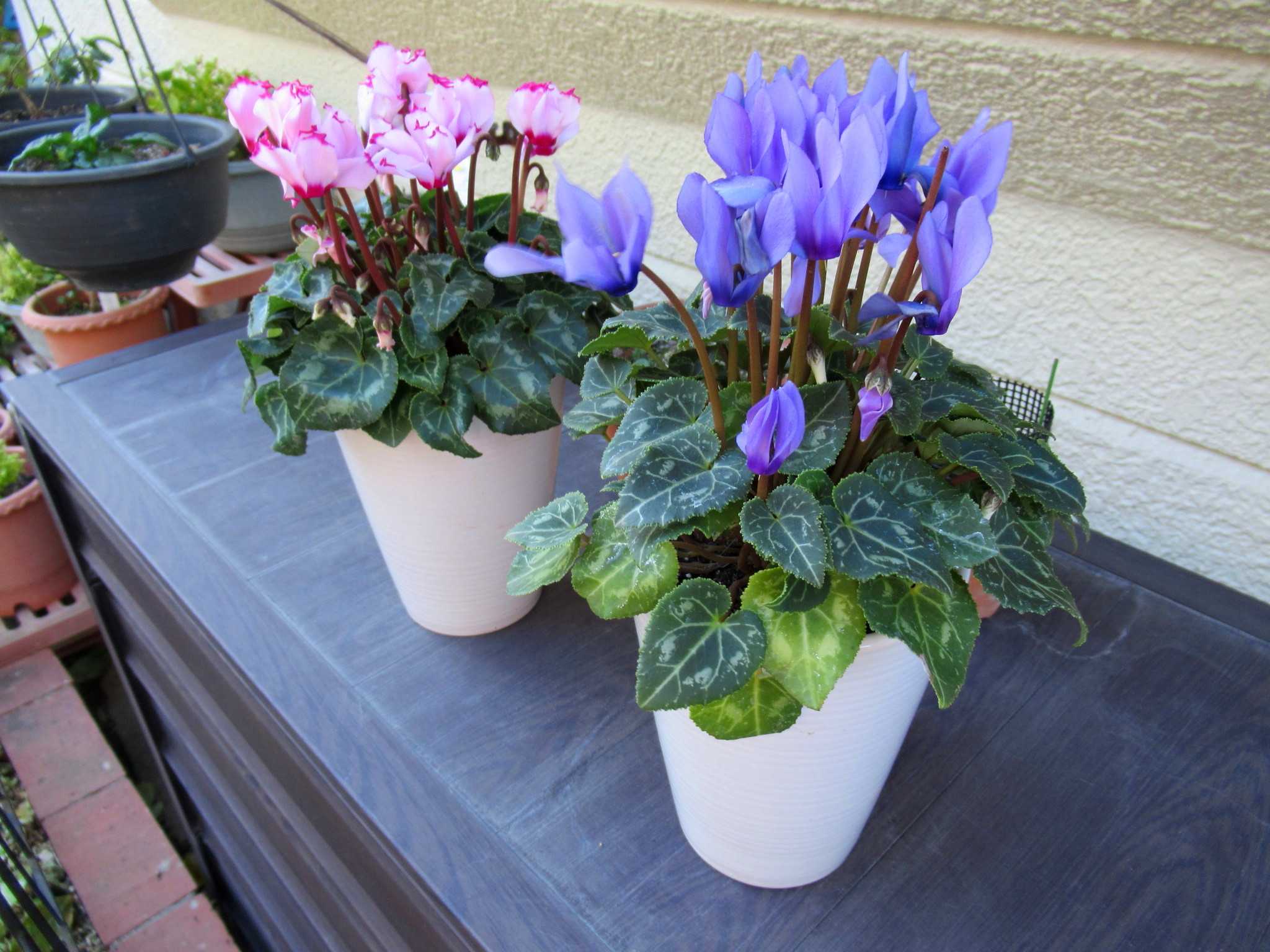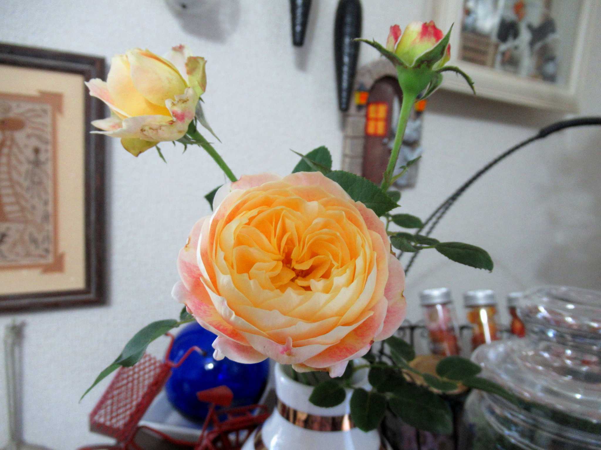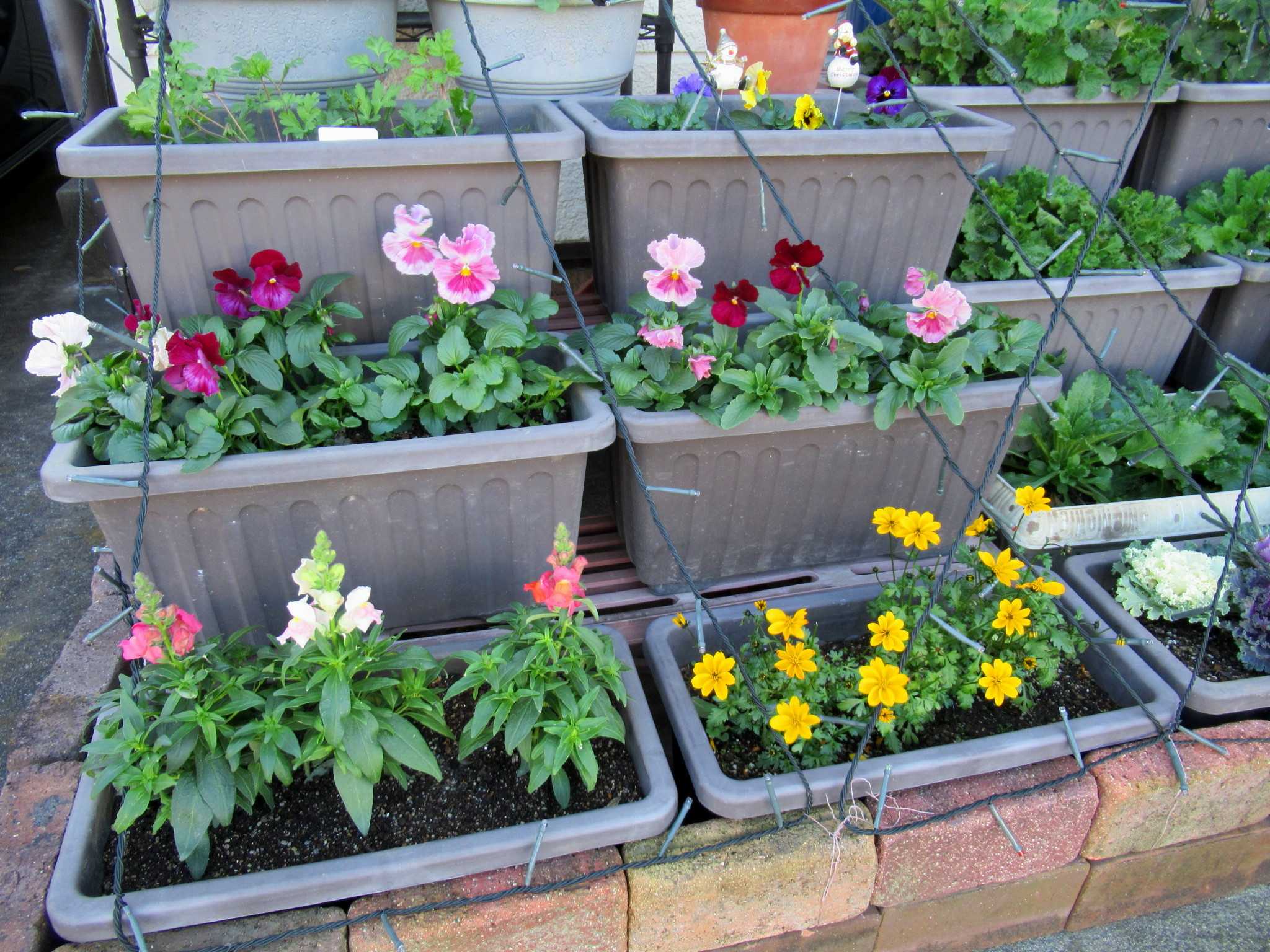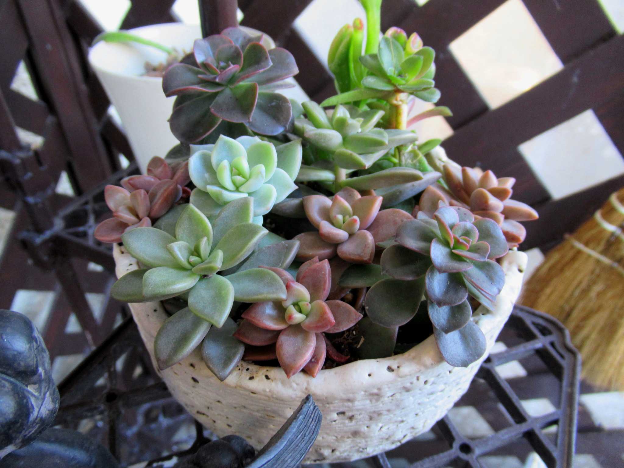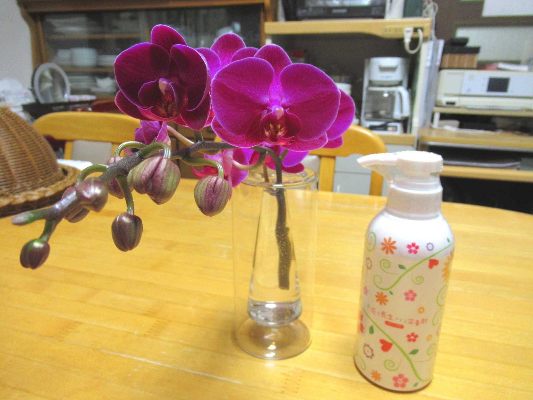 ![]() 今年の藤ツルリース第3弾は夏に育ててドライフラワーにした帝王かいざいく(リンクあり)が残っていたので速乾ボンドをたっぷり使って貼り付けてみました~n(..;)m? ![]() 花が入ると春だね~n(..;)m♪ ![]() 空いているところにはドングリやシャリンバイの実を張り付けてありますよ~n(..;)m? ![]() 渋い色のリースにピンクの花が映えるでしょ~明るい春を思わせるお正月リースもいいかも~n(..;)m♪ ![]() 寒くてもベランダは日差しがあたって野菜がすくすくと育っています・・・n(..;)m? ![]() サラダかぶのプランターでは~n(..;)m? ![]() さすが二十日大根と呼ばれるだけあってラディッシュが赤いかぶを付けていますよ~n(..;)m♪ ![]() サンチュは毎晩晩御飯の添えになってます・・・n(..;)m? ![]() スナップエンドウもすくすく育って花芽らしきものも付いてきましたよ・・・n(..;)m? ![]() サニーレタスはお店のレタスよりも柔らかくて美味しいらしく・・・ジージがランチのサンドイッチに挟んで食べてます・・・n(..;)m? ![]() 玄関わきに置いていたプリンセチアは日差しが足りないのかなかなか色付が進まないのでここに持ってきました・・・日差しと気温差が色付に関係してますよね~n(..;)m? ![]() 2階和室では・・・冬越しの植物たちが気持ちよさげです・・・n(..;)m? ![]() ここは日差しがあって温室みたいなので八福神(リンクあり)はどんどん花を咲かせていますよ~n(..;)m? ![]() 斑入りピンクも~n(..;)m? ![]() 赤も・・・n(..;)m? ![]() 温かいせいか下から葉っぱが出始めました・・・n(..;)m? ![]() リビングの出窓では~n(..;)m? ![]() かにゃかにゃバーバが失敗して茎を折ってしまった濃い赤紫の中輪コチョウランが切り花になっても元気に開花をしています・・・n(..;)m♪ ![]() 暑い夏だとこうはいかないんだろうけれど・・・切り花延命剤で充分蕾も開花できるみたいです~n(..;)m? ![]() 我が家の切り花延命剤(お花が長生きする栄養剤)(リンクあり)はこれです・・・n(..;)m? ![]() 折れた時は3輪ぐらいしか咲いていなかったのに今は6輪まで咲いていますよ~切り花延命剤のおかげですね・・・n(..;)m♪ ![]() そうこうしているうちに・・・他の胡蝶蘭たちもバルブを伸ばしてきています・・・n(..;)m? ![]() これも・・・そろそろ支柱をつけて向きを整えてあげないとね・・・くれぐれも折らないように気を付けて・・・n(..;)m? ![]() 庭で偶に咲いているバラも切り花にしてここに生けてます・・・n(..;)m? ![]() このバラはクロードモネちゃんでしたね~n(..;)m? ![]() なかなか咲かないけれど涼しいとしっかり花びらが増えてカップ咲きになるみたいですね~n(..;)m? ![]() 玄関ホールでは~n(..;)m? ![]() 夏の間にリビング窓でドライフラワーにしたセンニチコウが今年のカゴを完成させています・・・塗りなおしてリニューアルしたガーデンアニマルたちもクリスマスまではここでウェイティング・・・n(..;)m? ![]() 去年の冬の間に作ったドライフラワーたちもちょっと色あせてきたかにゃ~今年もドライフラワーになりそうな花を見つけたら買ってきて吊るしておかなきゃね~なんといっても猛暑の夏が長くなってしまって生け花は持たなくなったからドライフラワーは必須よね~n(..;)m? ![]() さて~、今日のかにゃかにゃガーデンは気温は低いけれど澄みきった晴天です~n(..;)m? ![]() エントランスの~n(..;)m? ![]() 昨日の最高気温が11.5℃・・・いよいよ寒くなってきましたね~今見てきたら、今日の最高気温は13.2℃・・・風が収まったからちょっと上がったかにゃ~n(..;)m? ![]() 盆栽風多肉ちゃん寄せ植えもカラフルに落ち着いています・・・n(..;)m? ![]() 紅葉の綺麗だった今年は多肉ちゃん寄せ植えも綺麗になったわね・・・n(..;)m? ![]() これにもひとつ赤が欲しかったけれどどこかで火祭り(リンクあり)を見つけたら買ってこようかにゃ・・・n(..;)m? ![]() ユーフォルビアはこのあと2階の和室に引っ越しました・・・n(..;)m? ![]() この子もね・・・n(..;)m? ![]() 一昨日は風が強くてね~深夜8m/sを超えていたみたいで風の音が煩くて目が覚めるほどだったのよね~寄せ植えのサンタがあっちを向いてます・・・n(..;)m? ![]() アプローチの門扉は閉じているんだけど・・・n(..;)m? ![]() 北西の風が時々当たるみたいでストロベリーポットのアリッサムがめくれあがっていました・・・n(..;)m? ![]() エントランスのベンチの横に吊るしている~n(..;)m? ![]() ヒューケラも綺麗に紅葉してくれて・・・n(..;)m? ![]() ヒューケラ・エレクトラ(リンクあり)の葉脈が赤くて綺麗です~n(..;)m? ![]() そうね、風が強かったのよね・・・n(..;)m? ![]() COOPさんで買った絵になるスミレ(リンクあり)の2株目が咲きました・・・青から水色にグラデーションになっていて綺麗ね~n(..;)m♪ ![]() 最初に咲いた方の縁に向かって紫にグラデーションしているのもいい感じ・・・n(..;)m♪ ![]() 秋に3株植え付けたゼラニュームもひとつだけ開花していました・・・ピンクが最初ね・・・n(..;)m? ![]() ふくの市(リンクあり)で買ってきたストックも花盛りになりましたよ~n(..;)m? ![]() ペンタスは寒