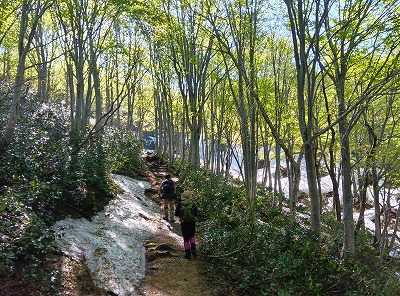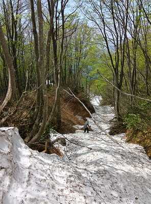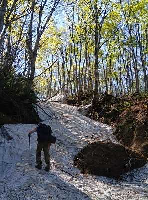 今年初めての二王子岳。3合目から雪があり、水場のサンカヨウはまだまだであった。雪歩きを楽しむことができた。
