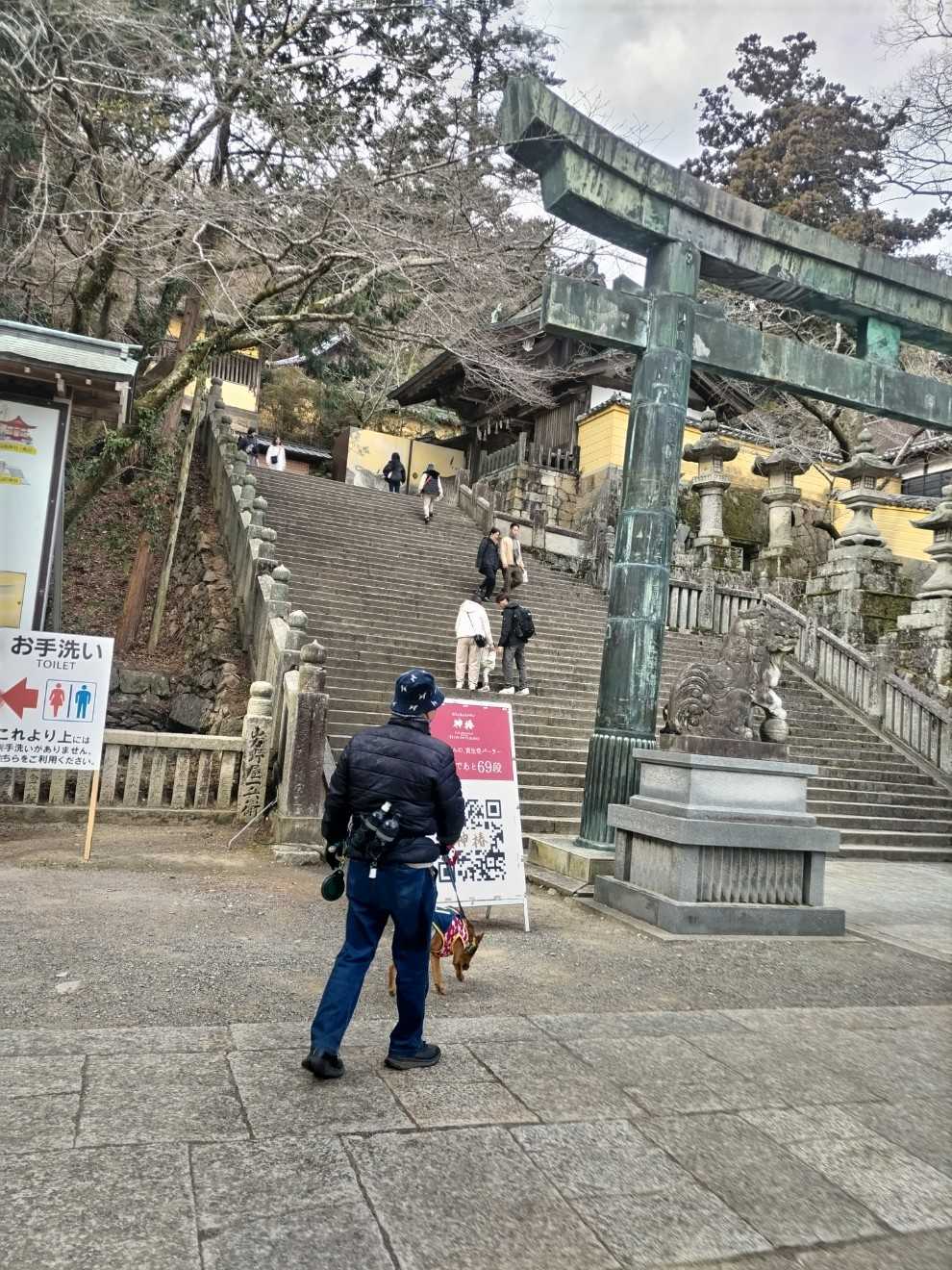 ![]() 土曜日、金毘羅さんのわん詣でに行って来ました。 わざわざイベントでなくても犬連れ参拝可能なんですけれどね(笑) ちょこはもう我が物知り顔で、裏参道への道をルンルン行きます。 裏参道は、自然豊かな山の中を(たまに階段も有るけれど) のんびり登ります。 しかも表参道の階段が名物なねで、めったに人にも会いません。 わんにも人にも優しい参道です。 ![]() ちょこには、さらにサラダバー付きです。 ![]() 冷たいと思っていたら、あられが降ってきました。 先日の砥部といい、、あられ続き… 岡山より香川の方が寒いのかしら? ![]() ここからは、表参道に合流します。 わん連れがかなり目立ちます!! さすが、わん詣で期間中ですねー(眼福!!眼福!!) 今年は午年、金毘羅さんには2頭の神馬がいらっしゃいます。 ![]() 大人気です。 さあ、階段を登りましょう。 ![]() ![]() さすが四駆は軽やかに登って行きますね。 いつもは交代でちょこ番をして、お参りしていましたが… 皆さんわん連れでお参りしているのを見て、 ![]() ちょこも一緒にお参りしましたよ。 ![]() ええっー!?そこを行くの? 確かに境内は賑わっていますが… 最近、ばあやもハマった御朱印を授かり、少し休んで下山です。 翌日仕事のじいや、奥の院は目指しません。 これに異を唱えたのはもちろん、ちょこ!! 一度行ったら忘れない男です(笑) でも、下りました。 ![]() 座り込みも辞さない覚悟の談判ですが、下りました!! なら、下りも裏行くちょこよー。 ![]() 表参道入って直ぐの酒屋金陵の中庭では、わん詣でマルシェで、ごった返していました。 ![]() 記念写真を撮って退散。 ![]() そっちは、参道よ!! もう一回ちょこよー!! と、押し問答の末、ちょこに甘々な飼い主は… ちょこのなすがままに、再び裏参道を登り、表参道の合流地で階段を見つめ、強制帰還(笑) 途中のベンチで、マルシェで買った味付け無しの壺焼き香川金時さつま芋のチップス?シート?を おやつに一緒に食べて。遠足気分。 随分遅めのランチは、食堂らんぷさんへ ![]() お庭のテーブル席は、嬉しいわん連れOK。 ご飯は玄米、チキンタルタル南蛮も美味しい!! お腹いっぱーい。 帰りに一軒寄って、欲しかった猪熊弦一郎のイラスト入り野田琺瑯のぱっとと、蓋付きタッパーをげっ。 与島で夕さんぽしてから帰りました。 足、ぱんぱんでしたー💦 お気に入りの記事を「いいね!」で応援しよう