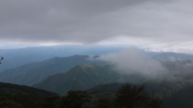 鳥取市で行われた吹奏楽コンクール中国大会高校の部のあとの28日(日)、 そのまま大阪に帰るのもちょっともったいないので、兵庫県宍粟(しそう)市の 三室山(標高1358m)に登ってきました。 時間的には短いのですが、天気予報で崩れそうと言っていたので、これだけに したのです。 三室高原入口から入ってすぐ、山側に立派な赤松数本が生えているところに、 20数台止められる駐車場があったので、ここに車を止め、林道を上ります。 坂がきつくなり始め、しばらく歩くと、道標があって山道に入ります。 すぐに沢沿いの道と尾根上の道とに別れますが、実は二つの道は10mくらいの 間隔を保ってほぼ平行に続いていて、しばらくすると合流します。 ![]() 間もなく、千種川源流の表示があります。ここから川の水は南へ流れ、佐用町や赤穂市 を経て、瀬戸内海にたどり着くのですね。 千種川源流からトラバース気味に登ると、広い尾根に出、ここからジグザグに登って 行きます。杉林の間から背後の南西方向に後山が見えるようになります。 岩の上ではハッキリと。 ![]() この辺りで自然林に変わり、ブナの木が見られるようになります。 なおも登って行くと、鎖やロープのある小さい岩場を上り、足元が笹になるとあとわずか。 山頂は木が生えておらず、見通しは良いのですが、この日はガスや雲で、 ![]() 北の氷ノ山は雲の中。左奥の扇ノ山はガスの切れ間から見えました。 誰にも会わずひっそりとした山行でした。 お気に入りの記事を「いいね!」で応援しよう
