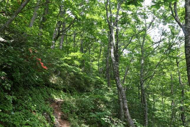 6月25日(日)、岐阜県揖斐川町と福井県南越前町との境にある、夜叉ヶ池と夜叉丸 (標高1206m)に登って来ました。ここに来るのは2回目ですが、この時期には日光黄菅 (ニッコウキスゲ)の花が見られるのではないかと、わざわざ遠くに行かずに楽しめたら、と 思って来たのです。 また、ワタクシはこの山を「ミニ雨飾山」と思っています。 まず駐車場奥の登山口から下って、 ![]() 池ノ叉谷 の渓流を渡ります。 早速、 ![]() ササユリとコアジサイ がお出迎え。少し渓流沿いを行くと、尾根の末端に取り付き、ジグザグ登って行きます。 杉の小さな林を過ぎると、長めの水平道となります。 ![]() ヤマツツジ や ![]() ヤマボウシ の花が多く見られ、ここは豪雪地帯だから初夏が来るのが遅いのかなあと思ったりします。 ブナの木の間から ![]() 岩峰群 が望めるようになると、水平道もそろそろ終わりで、間もなく夜叉姫伝説の ![]() 幽玄ノ滝 で、よく見ると傍らに ![]() ニッコウキスゲが2輪咲いています。 他にギボウシも咲いていました。ここは盛夏にはクルマユリやシモツケソウなども咲く場所です。 更に登って行くと、昇竜ノ滝の下段脇にも ![]() 多く咲いていました。が、近づけないのが残念。 と思って岩場を登ると、 ![]() 登山道脇に一輪咲いていました。 県境稜線に出て、直ぐに夜叉ヶ池に行かず、間近の夜叉丸というピークに登りました。 ピーク手前の肩の所で ![]() ![]() 夜叉ヶ池と向こうの三周ヶ岳 が望めます。逆に夜叉丸のピークからは夜叉ヶ池が見えず、遠くに ![]() 能郷白山(左奥)や高賀三山(右奥) が望めました。 池の畔に下りると、水面が静まり返って見事な ![]() リフレクション でした。イモリ、カジカガエルやヤシャゲンゴロウ(固有種)が住んでいます。 池端のベンチで休憩し、往路を引き返し、 ![]() ブナ森 が作る木陰に癒されながら下山したのでした。 お気に入りの記事を「いいね!」で応援しよう