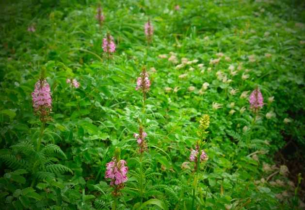秋田遠征トレック2日目の9日(水)、今度は秋田側八合目登山口(標高1300m)を スタート・ゴールとして秋田駒ヶ岳を登ります。高山植物の宝庫の山で、日本海側も歩き、最高峰 男女岳にも登頂して秋田駒ヶ岳を楽しみ尽くそうと考えたのです。 八合目登山口駐車場には、避難小屋、小さな売店と水洗トイレがあって、登山口には靴洗い場も あります。人気の山だけあって充実しています。 ここから片倉(新道)コースを登り、阿弥陀池から男女岳を往復し、横岳、焼森を経て シャクナゲコースを下って八合目に戻る設定としました。 さすがに八合目は森林限界を超え、ブナ等の森は越えているので、林床の植物は見られません。 ![]() ハクサンチドリ ![]() 分岐から旧道を見上げる 真っすぐ阿弥陀池に向かう旧道は崩落個所があって、通行を推奨されていません。男女岳を西に 巻く新道コースを歩きます。 とは言え、片倉岳展望台付近からはお花畑が連続します。 ![]() ミヤマダイコンソウ そして ![]() ニッコウキスゲとハクサンボウフウ のお花畑が広がっています。 ![]() ニッコウキスゲの斜面 ![]() コバイケイソウの原っぱ 道は男女岳と男岳との間に入って行き、木道になります。 ![]() ハクサンシャジン ![]() ニッコウキスゲの庭 ![]() ミネウスユキソウと綿毛のチングルマ ![]() コザクラソウと綿毛のチングルマ ![]() ウサギギク ![]() ヨツバシオガマ ![]() 阿弥陀池と男女岳 ![]() 男女岳山頂から岩手山 残念ながら、ガスが上がって来ており、田沢湖を見下ろすことは出来ませんでした。 一旦、横岳に上がり、下りに掛かります。 ![]() 女岳と緑のシナモンロール似の小岳 ![]() 焼森のコマクサと男女岳 ![]() 湯森山、乳頭山へ続く山々 ![]() ハクサンシャクナゲと乳頭山 シャクナゲコース後半では、美しい樹皮のミネザクラの木も見られました。 下山後、山上から見下ろせなかったので ![]() たざわスキー場から田沢湖 を眺めて秋田駒ヶ岳トレックを締めくくりました。 天気に恵まれ、数多くの高山植物の花々を愛でることが出来、とても良い山行となりました。 お気に入りの記事を「いいね!」で応援しよう