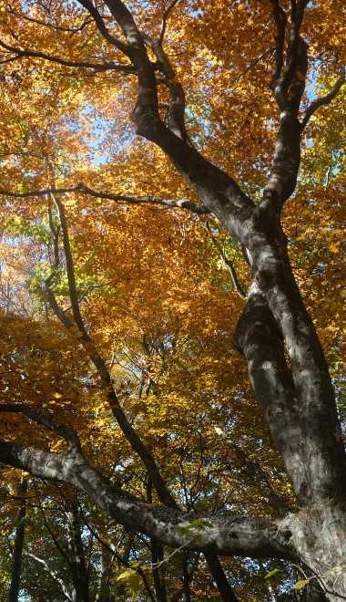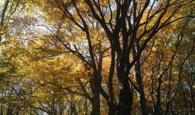 8日(土)、広島県安芸太田町の市間山(標高1109m)と立岩山(標高1135m)に 登って来ました。西中国山地も紅葉が見頃なようなので、どの山にしようかと、調べていたら、 この山の存在を知りました。安芸太田町役場から南西へ入って行くので、西中国山地の主脈と 言うより、手前の山ということなります。そのせいか、あまり知られていない人気の低い山です が、静かに歩ける穴場の山のようです。 上田吹集落の奥、臼谷林道に入ると、右上にある獣害除けの電気柵を開閉して進み、「市間山 登山口まで0.6キロ」の小さめ案内板があるので、右折して砂利道を更に上がって行き、路肩が 広くて普通車4台くらい止められる登山口に到着です。他に車は止まっていませんでした。 (カーナビで道路が出てこなかったので、あえて書いておきます。) 登山口は紅葉した樹があって気分が上がりますが、すぐ杉林の尾根の坂に変わります。 坂が緩くなって来ると、紅葉した木がちらほら見え始めます。 間もなく、紅葉樹林に入り、紅葉があちこちに見られるようになります。 一気に気分爆上がり。 ![]() 黄葉 ![]() 紅葉 ![]() 青空に映える黄葉 ![]() 登山道と黄葉 ![]() 紅葉・黄葉 ほぼ樹木に囲まれた市間山山頂からは、緩いアップダウンを繰り返しながら南西に進みます。 広葉樹林帯が美しくて、紅葉の楽園となっています。 ![]() 大木と紅葉 ![]() 幹と紅葉 ![]() ブナ黄葉 ![]() 紅葉を見上げ 立岩山山頂が近づくと、 ![]() ドウダンツツジ紅葉 が見られます。 大岩を南に巻きながら、ロープの岩場をちょっと登ると立岩山山頂です。 岩上の山頂なので、展望が抜群です。 ![]() 立岩山山頂から市間山 ![]() 立岩貯水池と紅葉の十方山 ![]() 山頂標と秋の空 この先も歩くことは、時間の関係で諦め、引き返します。 ![]() 目一杯の黄葉を纏うブナ もう一度紅葉の楽園を楽しみながら、登山口に戻り下山しました。 この山は、多くのハイカーに知って欲しいですね。 お気に入りの記事を「いいね!」で応援しよう