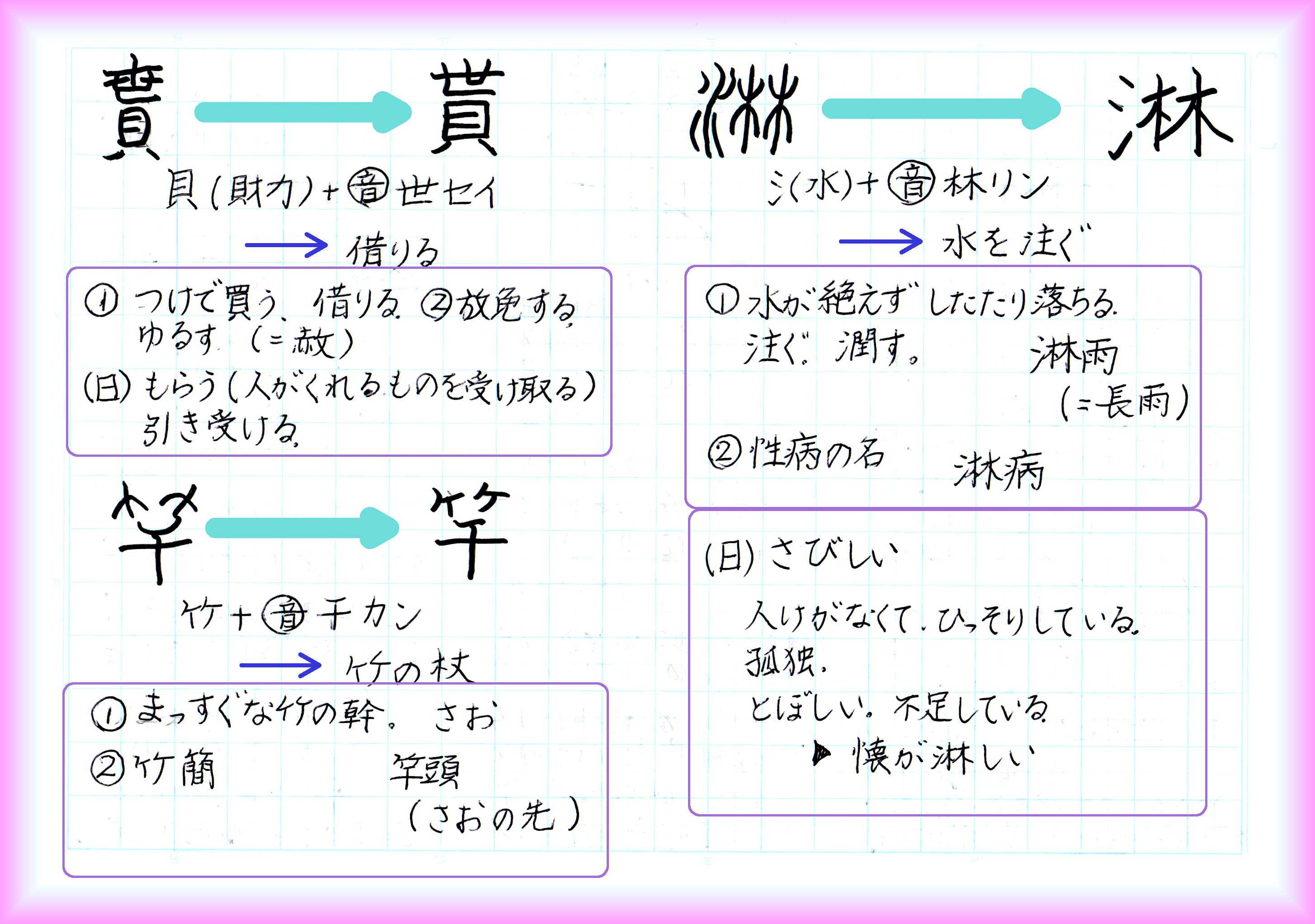 ☆淋…リン、そそ(ぐ)、したた(る)、さび(しい)、りんびょう☆竿…カン、さお、ふだ☆貰…セイ、もら(う)、か(りる)、ゆる(す) 句作のために訪れた奈良の森林での体感。人から離れてひとりでいると、淋しいという感覚を持つのが普通ですが、孤独を慰めて余りある自然を、橋本多佳子は感じます。 偶々(たまたま)出会った、竹竿を持った子供たちについていくと、面白いように木の実が落とせました。椎の実の見えざれど竿うてば落つ 「子どもたちに木の実を貰い、句を貰ったのでした。」という言葉が素敵だと思うエッセイでした。 引用および参照元:『花の名随筆11 十一月の花』作品社 より 橋本多佳子『椎の実』