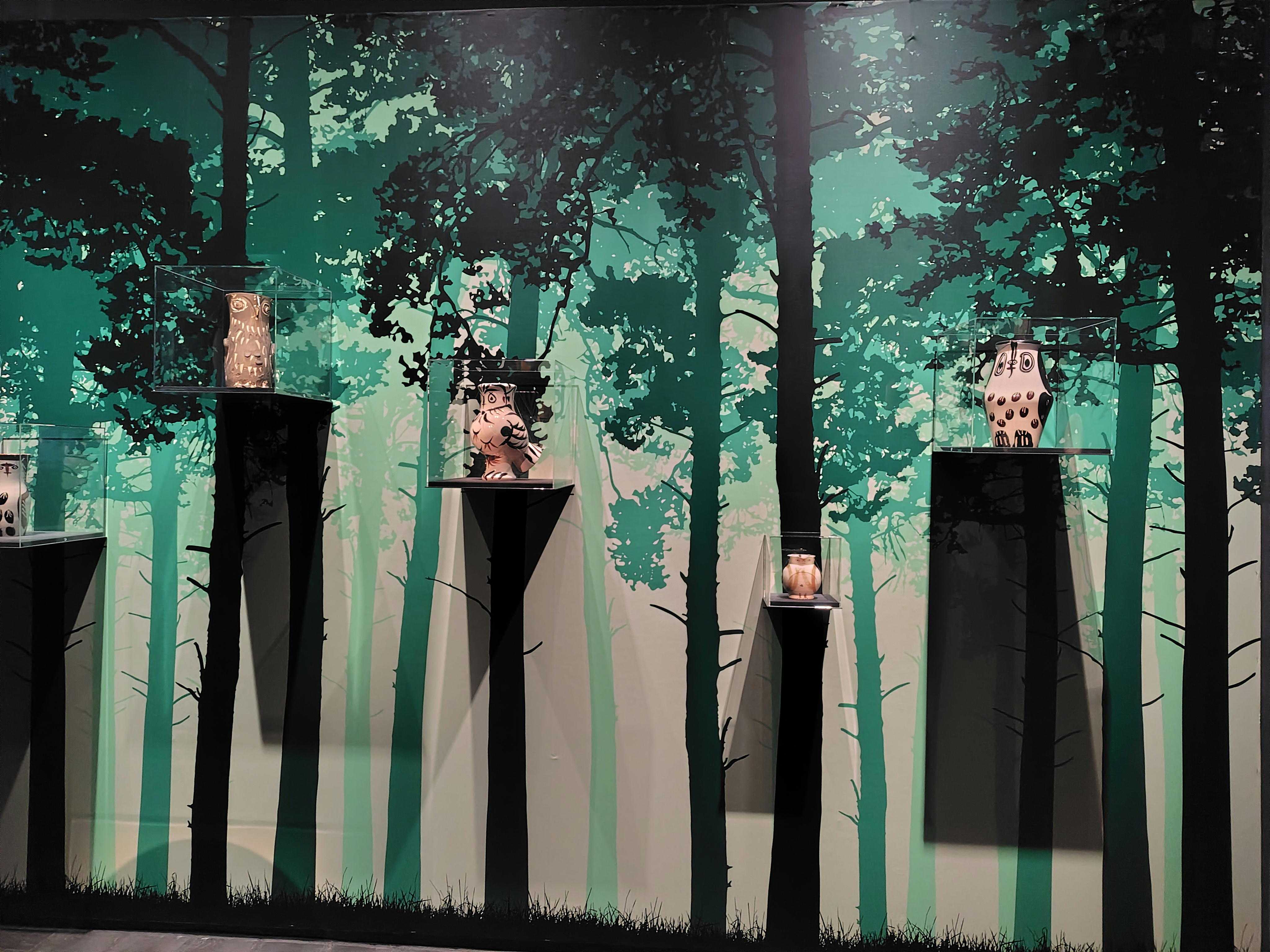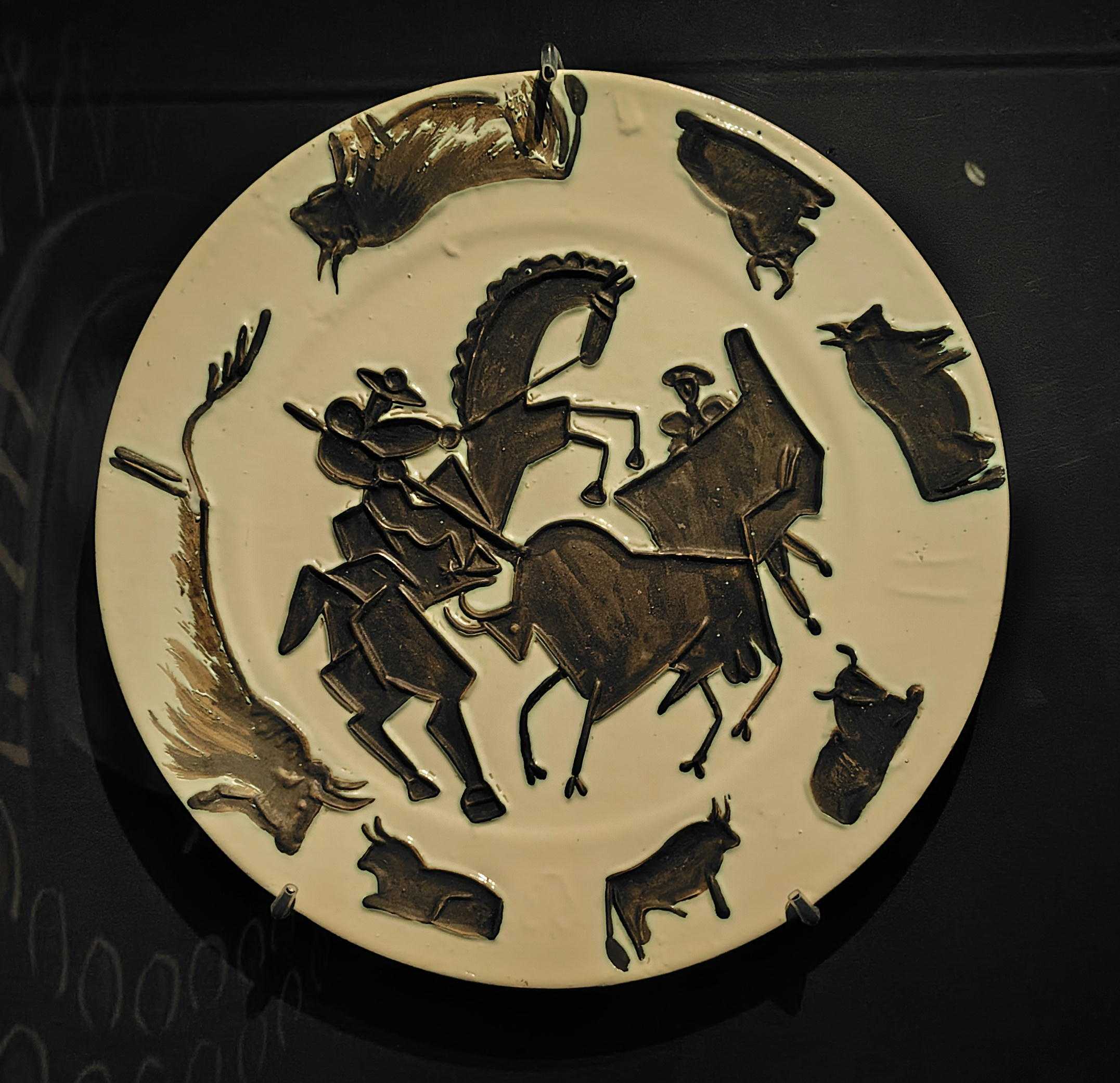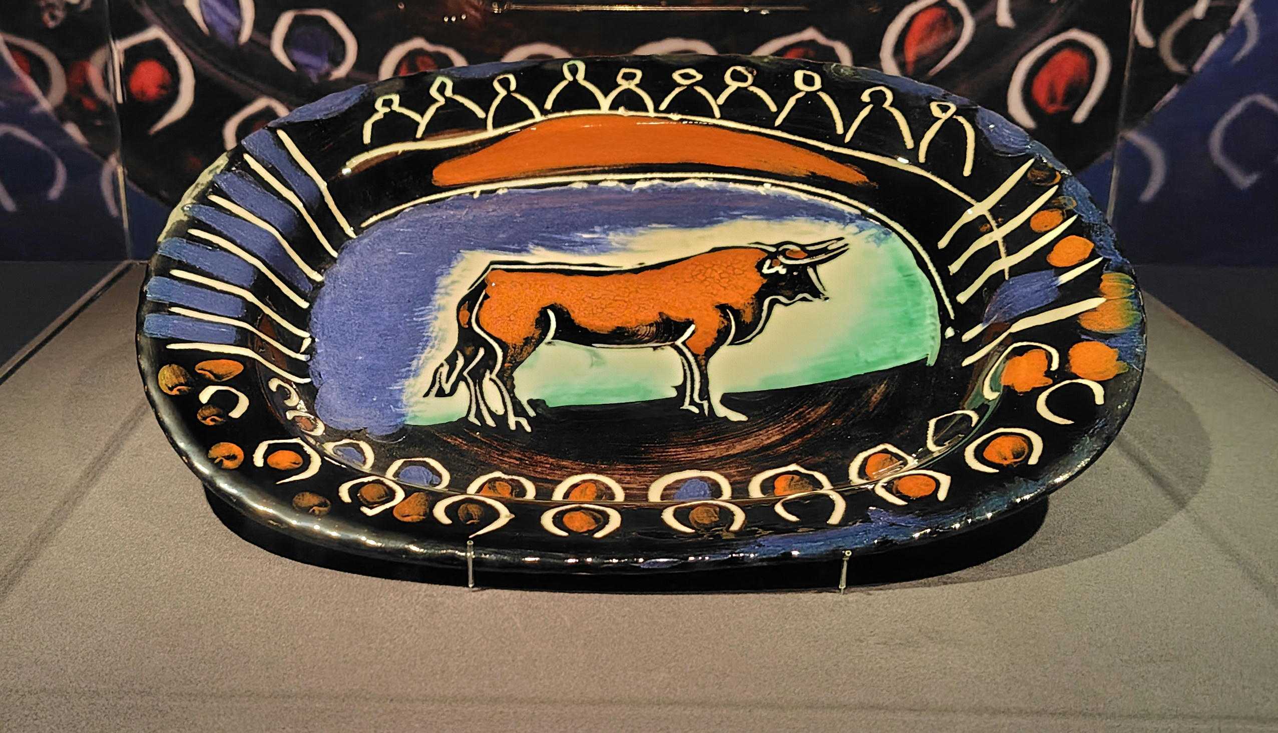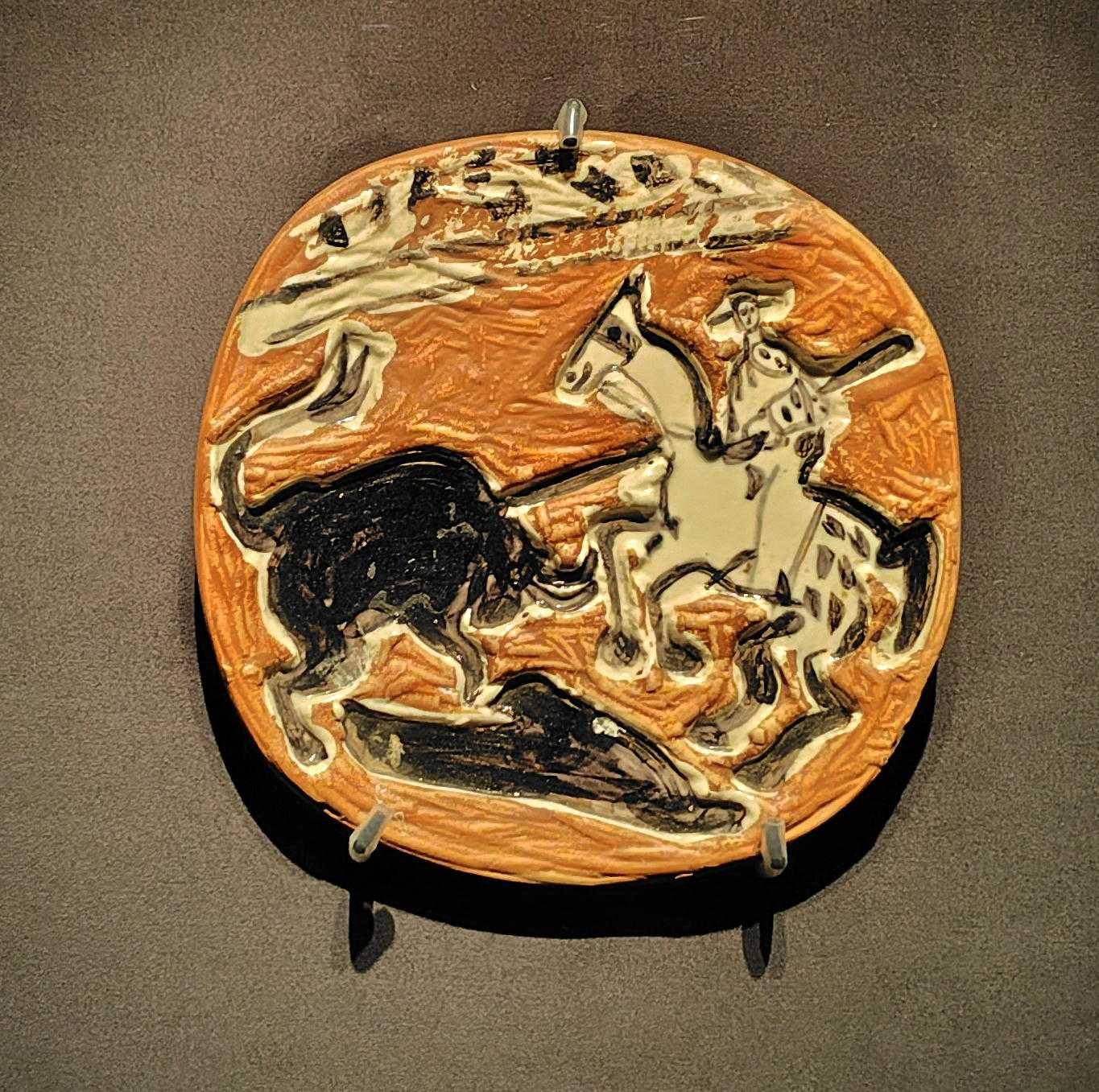 パブロ・ピカソというと『パイプを持つ少年』『アビニョンの娘たち』(1907年)『3人の踊り子』『ゲルニカ』(1933年)『泣く女』(1937年)など時代によって変遷する作風の絵画で知られます。 ピカソには版画・彫刻の作品もあり、晩年は陶器制作に没頭しました。作品数はおよそ3000点と言われます。この陶器作品を鑑賞できるのが、南青山の「ヨックモックミュージアム」です。 ![]() ![]() 右:アウロス(双管の笛)の奏者 晩年の作品だからでしょうか、陶器に描かれた人や動物の顔はどれも穏やかで、可憐な印象を受けました。 ![]() 壺で作る梟 ![]() 梟は、他の鳥類と異なり、人間と同じように目が正面についているため、ヨーロッパでは知性の象徴とされました。ピカソも梟に親しみを持ち、水差しや、2つの壺を組み合わせた形を梟に見立てて作品を作っています。 ![]() 闘牛場の牛 ![]() 闘牛(コリーダ) ![]() ピカドールと牡牛 ピカソは絵画にも多く闘牛の場面を描いています。「コリーダ(闘牛士の死)」は10万点以上の作品中最高傑作と言われます。陶器作品にも多くの闘牛が描かれていました。 ![]() ![]() ピカソになれる?椅子 実際座って写真が撮れるフォトスポットです。 お気に入りの記事を「いいね!」で応援しよう