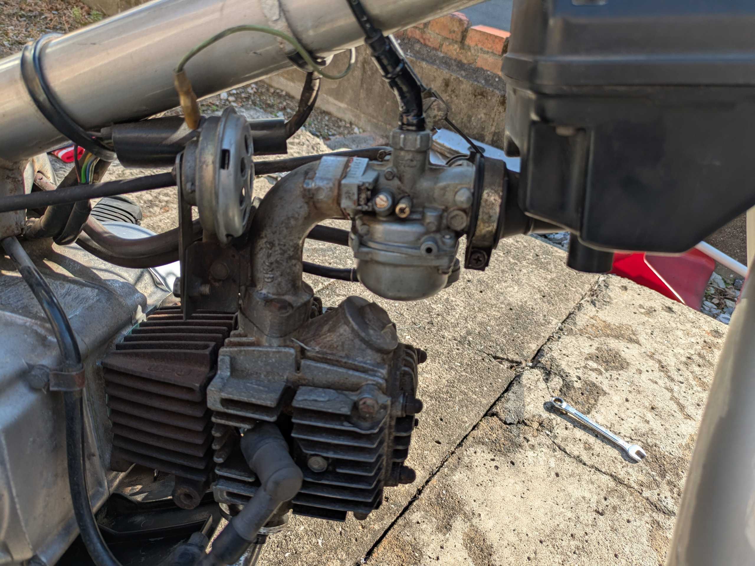佐賀県小城市のKKモータースです。今、ホンダ ズーマー 製作中です。マフラー装着しました。耐熱黒塗装しております。シート装着しました。フロントカバー装着しました。ちなみに、バッテリーは生きておりました。念のため、充電丸一日かけております。シート下のアミアミ装着しました。これでシート下が小物入れになります。何故か、ラジエターカバー赤塗装しました。購入後、あなたの一台と分かるように!KKモータースで仕上げたバイクと分かるようにという意味もあるのか、ないのか。前後ブレーキセンサクリーニングしました。しっかりブレーキランプ光っております。片方ヘッドライト球切れてましたので新品交換いたします。これで製作完了です。今回のズーマーは結構新品パーツ組み込んでおります。安全に長く乗ってもらえるなら全然問題なし!