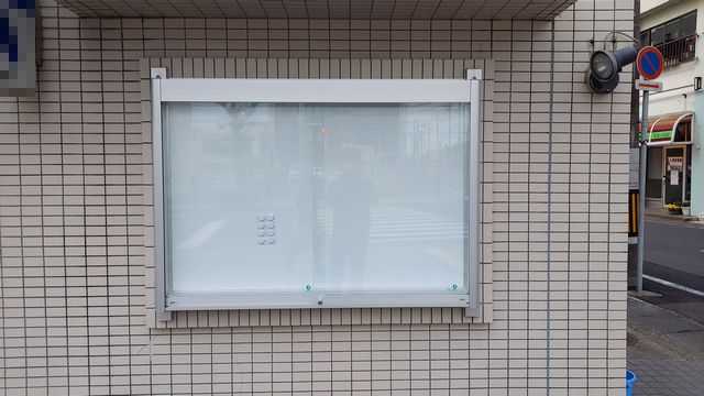 先日、日頃より大変お世話になっております(←ここ強調)、金融機関様からのご依頼で掲示板を設置してきました。学校の昇降口の前とか団地の入口に良く見かけるやつですね。