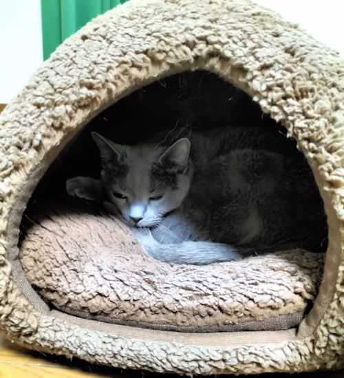 1週間ほど前から、 本格的に、エリザベスカラーを外す練習をしてきました。 昼間見ている事の出来る時に、外してみたり。 11月29日は、 夜寝る前に外して、朝まで外したままだったけれど、 次の朝ボディーチェックしたら、どこも剥げていなかった。 自分で毛を抜かなかったって事。 その後もチャレンジしたけれど、 まだ時々抜こうとするので、 その都度エリザベスカラーを装着。 また頃合いを見て、外す。 12月3日、4日も、夜寝る時だけ外した。 よし、毛は抜いていない、 成功かも~~~! って、思っていたのに・・・ 5日早朝、く~ちゃんのえずく音で目が覚めた。 嘔吐、毛玉大量。 やっぱり毛繕いのついでに、少しは抜いていたのかな? ボディーチェック、剥げていない。 それで大丈夫そうなので、 5日の夜から、今日までずっとエリザベスカラーは着けていない。 お顔洗いや、毛繕いもしているけれど、 抜いている様子は見ていない。 もしかしかして、治った? 毛を抜くのは、止めた? そうだとしたら嬉しいけれど、 ぢゃ、 今までのは、なぜ? まだまだ油断は出来ないかもしれない。 もうしばらく様子を見ます。 さて、エリザベスカラーを着けていないと出来る事。 ![]() ドーム型のベッドに入れます。 去年の冬は、入れなかった。 出してあげたら、さっそく入っていました。 それから、 エリザベスカラーを止めてから、 ご飯を食べる量が増えました。 やっぱり着けていると、食べ難かったのかな? ドライフード 1日量30gだったのが、 ここ数日45g食べています。 朝晩15gずつあげていたのが、 夜の分をあっという間に食べてしまうので、 また15g追加、って感じです。 入れておかないと、真夜中に起こされるからね。 にほんブログ村 ↑ クリックして応援して頂けたらうれしいです ↓ ![]() ロシアンブルーランキング お気に入りの記事を「いいね!」で応援しよう