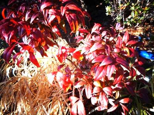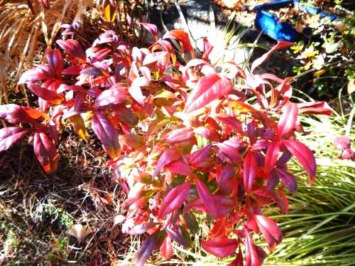 夏は、緑の葉ですが、秋になり寒くなると葉が次第に赤みを帯びてきて、霜が下り雪が降り真冬になると、葉がほとんど真っ赤な色になります。 ![]()