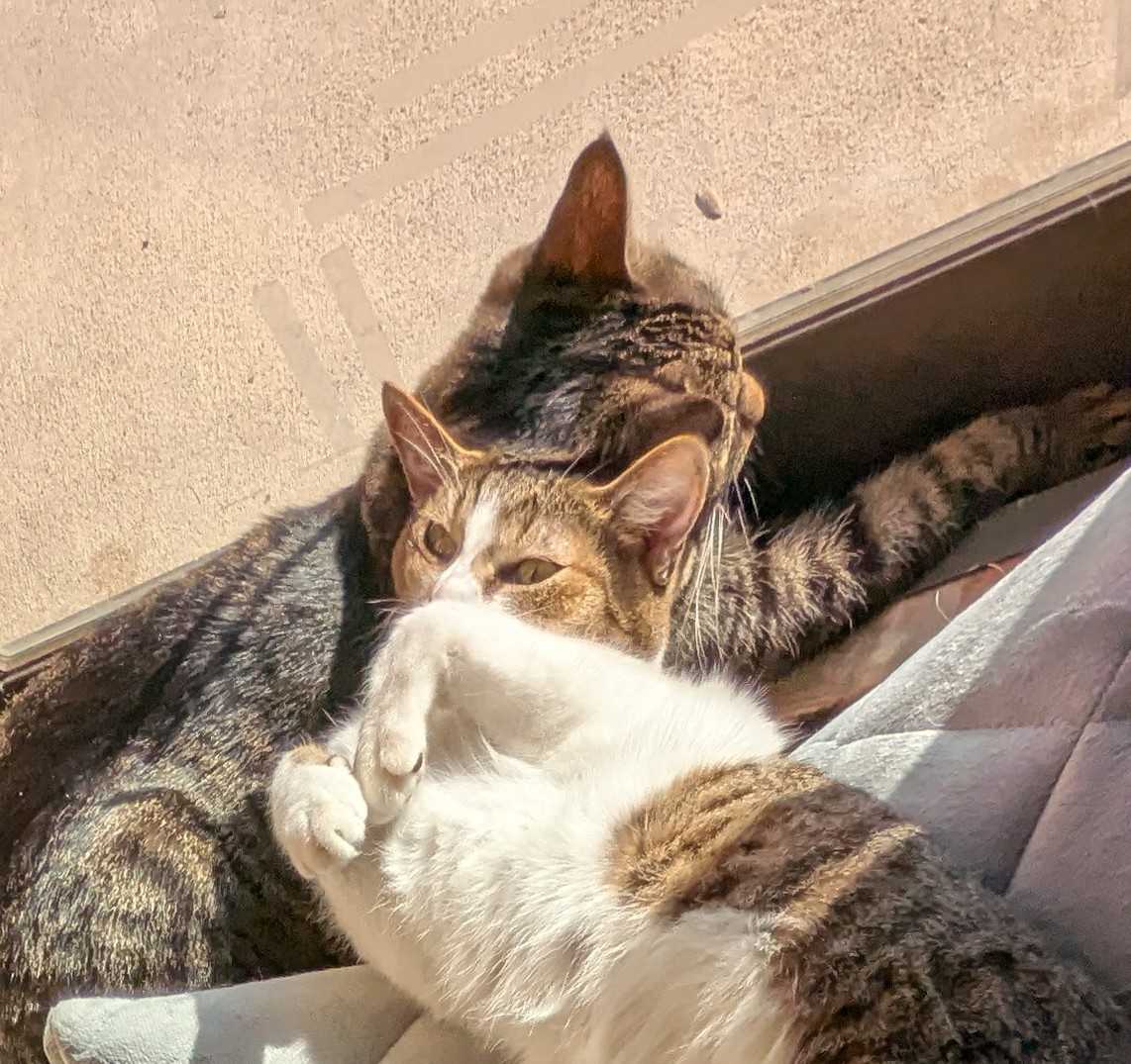 仲良くひなたぼっこ。ちょっと狭い。にほんブログ村