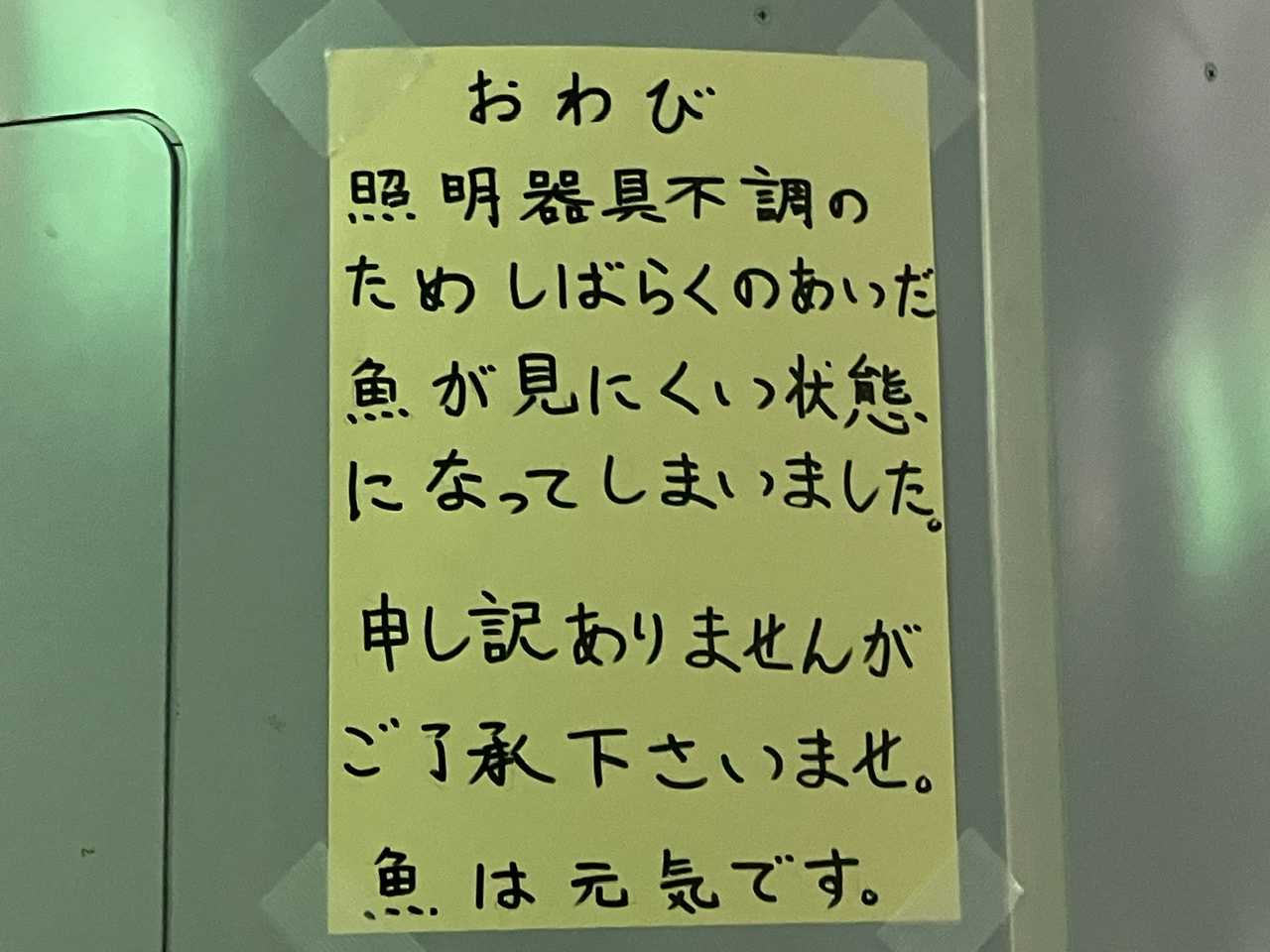むっあれ?カダヤシコーナーも入れないんだっけ??残念…ん?やっぱりお知らせにはないねぇメダカコーナーは見られるよジャワメダカちゃん早く終わらないかなぁメダカ館目当てで来園する人も絶対いるからお知らせした方がいいと思うこの間メダカ館に入りたかったよ〜ぅって入り口で泣いてたちっちゃい子がいてかわいそ可愛かった。(ごめんね…お父さんがちゃんと調べてなくて…ってめっちゃ謝ってた。日淡ガチ勢かな?)