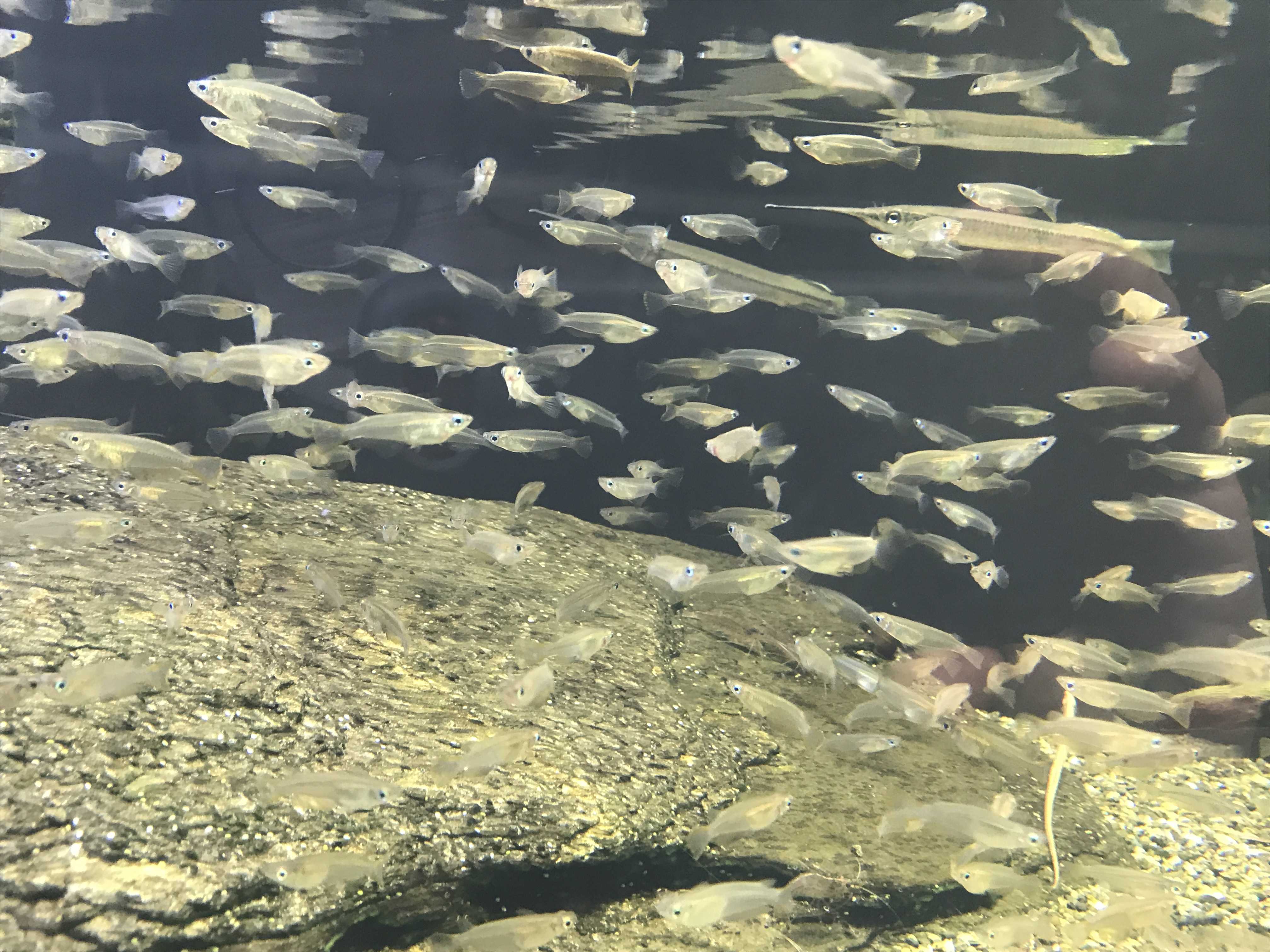 こんにちは、ボラ!今日も丸くてかわいいね!トビハゼちゃんいますか?上皇さまといえばハゼだよね〜うーんちょっと展示変わった?さっぱりしたような…わかんないけどいたいたーーーlナミハゼちゃんを探せうーーーーーんわかんなかった!またゴマハゼちゃんも展示してほしい〜ハゼ類を同定できるってすごいわ。メダカ館あるある誰がいたっけ…