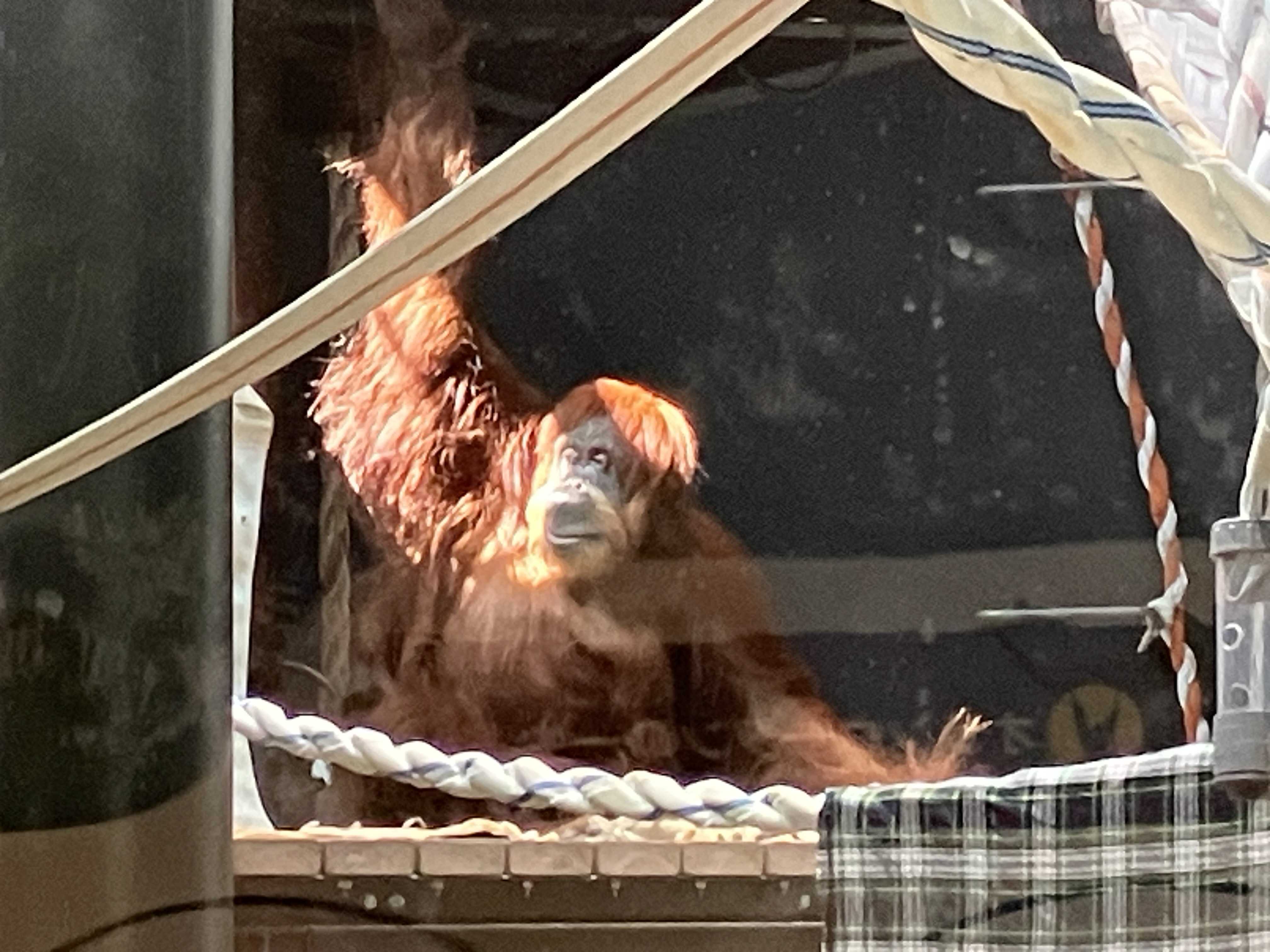 ネオさんこんにちはお布団が干してあるなネオさんが干した?飼育員さんかな?旧獣舎でお布団干したり掃除しているのを見た事あるんだけどあれはアキちゃんだったかなネオさんだったかなぁ赤ちゃん生存率95%もあるんだ!すごい!ネオさんは53歳元気に長生きしてね!