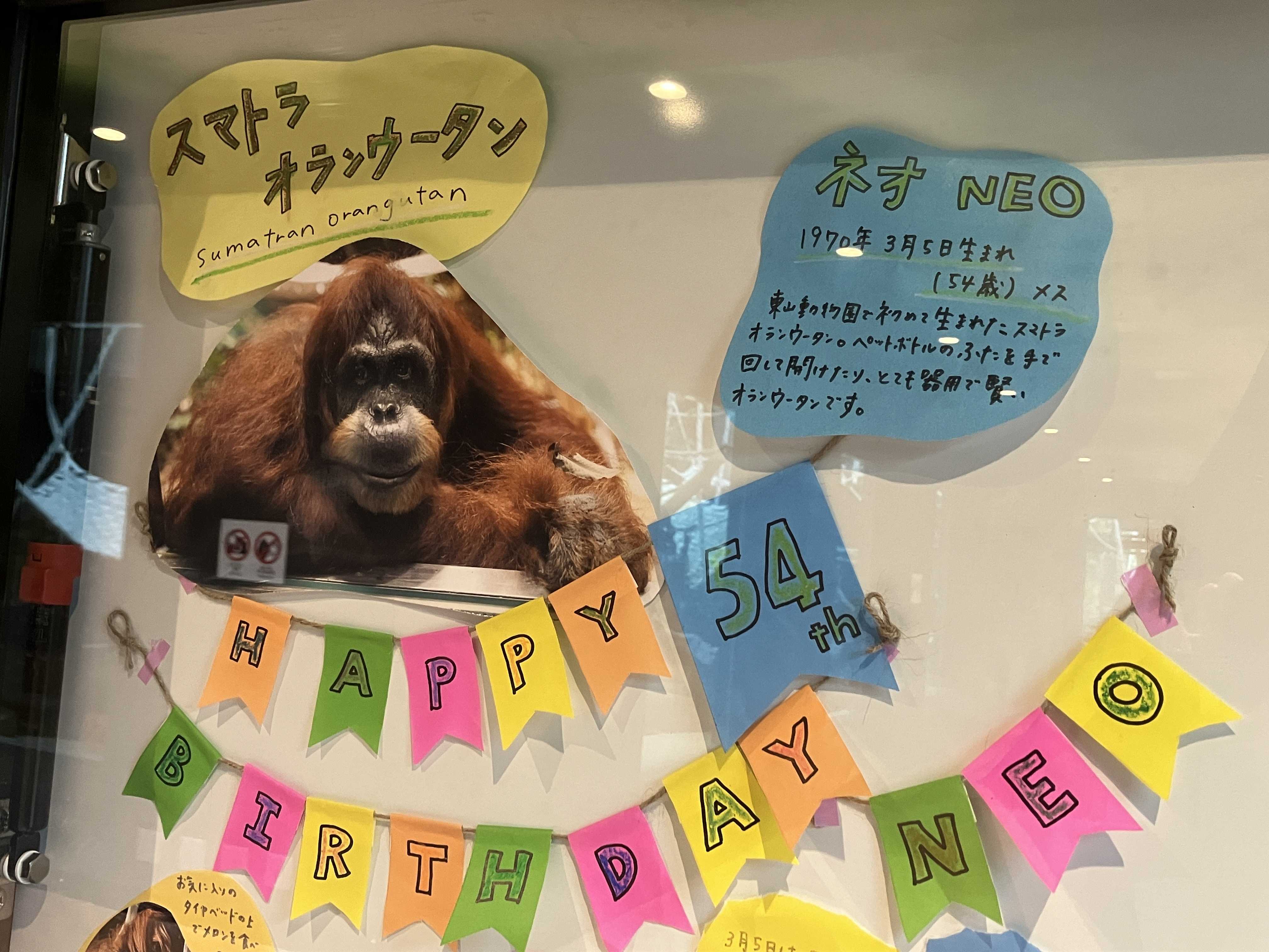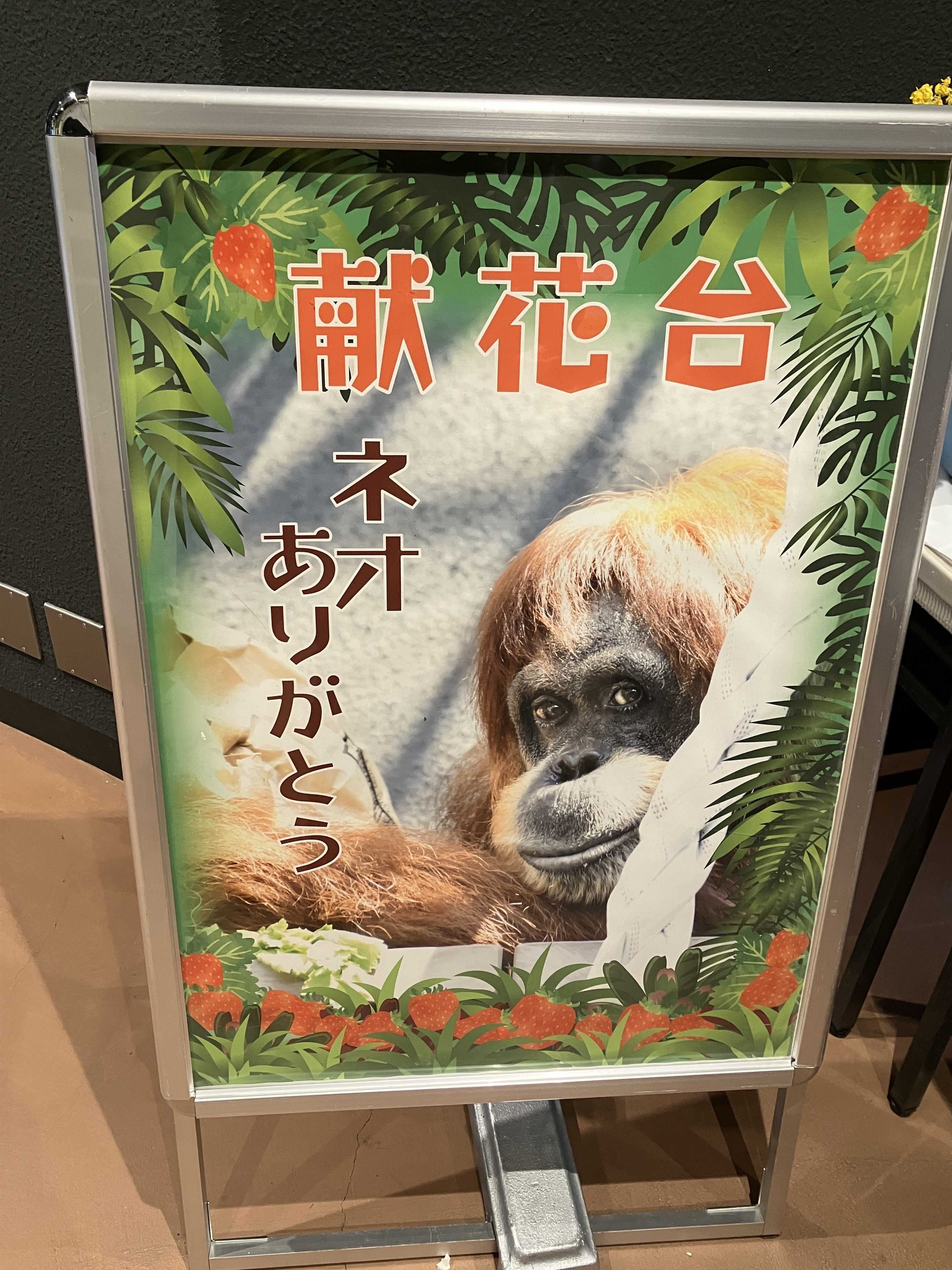 ありがとう、ネオネオさんが亡くなり、新しいオランウータン舎は誰もいなくなりました。献花台はお花の他にも…手紙とか写真もたくさんありました。誰よりも長く東山にいたネオさんでした。献花台が撤去されてからは写真が飾られています。ちっちゃいネオさん前髪がいつもかっこよかったネオさん東山うまれ、54歳ネオさん、今までありがとう。
