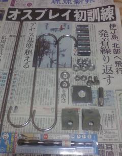 準備をしていどぅ。これからの季節、ちょうどよい。物置に眠るカレらを呼びおこした。けっこぅ錆びて傷んだフックを交換した。ついでにラインも交換した。まだまだイケる、懐かしのTEAM DAIWAリールもOHした。行き先は?(びっぐ、そると、うぉーたー!)カタカナでゆうと(ビッグ、ソルト、ウォーター!)英語でゆうと(Big,Salt,Water!)漢字でゆうと(大、塩、水)。韓ドラ二枚目に例えると(イ、ソ、ジン)…王様?。つまり、どこぞに潜む見えないヤツらを捕獲せょ。あの大海原に立ち向かうのだ!よいな?狙うは?ジャイアンと、ればりー!。。。ん?じゃいあんと、とれば、りー!。。。なんかちがぅ…。よーするに、『GT』(Jiant,Trevally)をゲットせょ。そぅ、カレらをピュっ!と投げて、TDで巻く。そーすると、おそらく、カリカリカリ~(ググっ!)。ってきたら、とぉっ!(ん、グググ~!ぬぉぉぉ!)ってなって、近くに寄せたらコイツで(んガっ!)ってするのさ。おわかり?そーね~、1日100投を目安に足で釣れ。足で追え、ですかぁ~。でも、すでに闘いは始まっていどぅ。ゆうべも夢の中で70Cm級を一本釣り上げたのだ。イメージだけはバッチしょ。;‐‐)=bただ、心配はお天気さん。今日からコチラは梅雨入りしたとみられる。むむむ;。