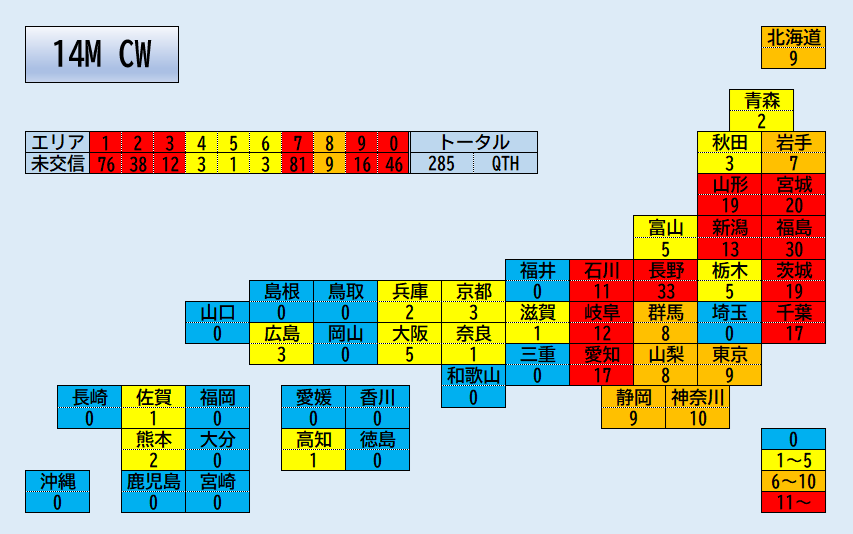浅口市が成功しました。強くなるとはっきりCWだと分かりましたが浮上時間が短く2度目のコールでQSOに至りました。素晴らしい瀬戸内海伝搬。歴代飛距離第3位に入りました。パート2の倉敷市は気配もありませんでした。基本的に、岡山県は遠いのですHi午後の部の総社市も気配が来ませんでした。基本的に、岡山県はQSO出来る事が奇跡なのですHi