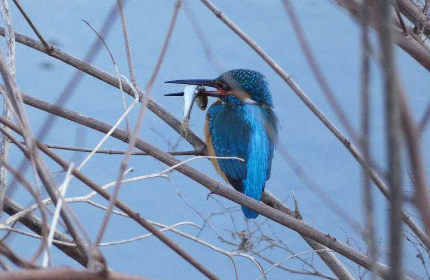朝6時 晴れ 気温-2℃。 出がけ時-2℃。 戻り時+3℃。 5時前にベランダに出て空を眺める。きのう同様に真上に月。しかし今朝は雲が見えない。なのにきのうの日中の暖かさのためか今朝は少し暖かいと思った。でも八王子アメダスの数値はきのうと変わらない。 06:05発~08:15戻りで歩いてきました。 ![]() 06:55、南浅川を上がって、高尾山観測ポイントの対岸の木のモズ。 ![]() 07:10、睦橋上流水場まで下って来て、足元にサギはいるけど撮れない。 ![]() 07:12、睦橋上流側のカワセミ。 ![]() 07:13、睦橋から上流側水場を見るとアオサギとダイサギとコサギとカルガモ。 ![]() 07:15、長房橋近くのカワセミ。 ![]() 07:25、五月橋下流側のカワウ。 ![]() それとカワセミ。 ![]() 07:42、市役所北側の鶴巻橋の真ん中で浅川上流側を眺める。 ![]() 左手前にツグミ。 ![]() 08:04、カワラヒワ。 ![]() 08:07、北浅川の流れ。 ![]() きょうのハンディGPS。 今年もウォーキングの距離は東京周辺大巡り=武蔵野線→京葉線→りんかい線→京浜東北線→南武線の周回とします。 武蔵野線駅の府中本町駅を出発点として外回りで3周目 武蔵野線の新秋津駅、東所沢駅を通過です。(写真はウィキペディアから借用) 06:16の南浅川流量(横川橋から)水涸れ ![]() 06:30の(7キロ先)高尾山頂(水無瀬橋から) ![]() 06:55の(6キロ先)高尾山頂(横山橋近くから)南浅川水涸れ ![]() 07:44の(60キロ先)富士山頂(鶴巻橋=八王子市役所=から) ![]() *きょうの散歩(部屋から部屋) ウォーキングの歩数 :13、500歩(100単位に切捨て)(シッカリ9,648歩) (今月8万歩、今年51万歩) 歩行距離(ハンディGPS): 7、650m(50単位に切捨て) (今月46km、今年287km) アマ無線QSO :ERMさんとD-STAR御岳山430で CGX,IAR,AQT,FNBさんと439.66八王子レピータで 今月の劇場映画鑑賞本数: 0 今年の劇場映画鑑賞本数: 7