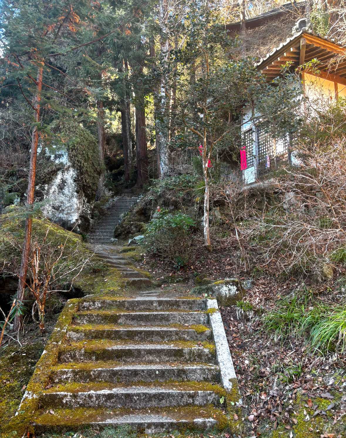 「あれ?今日これ観光で終わってもよくない?」感 が序盤で出ます。 でも今日は登る日。 観音様に「無事下山できますように(主に足)」とお願いして出発。 法性寺第二駐車場を利用した場合、お寺の階段を上がったところにある箱に協力金として300円を投入します。