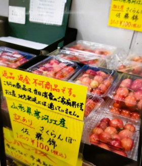 さくらんぼの季節を待ってから朝パフェ発祥のお店にGO!してきやした 早朝の車出し&スイーツお付き合い、センキュー隊員🥺 🍒『oh!show!cafe』 ![]() 県内最大級の王将果樹園が経営しておりまふ さくらんぼが鈴生り ![]() 店内には贈答用のさくらんぼや加工品、グッズなど色々ありました ![]() ![]() 奥にはさくらんぼの木を眺めながらの飲食スペースも ![]() もうすでに暑かった(6月初旬)ので隊長たちは2Fへ さくらんぼをイメージした?椅子が可愛かったれす ![]() 隊長はパフェ、隊員はソフトコーン ![]() 朝日の逆光で美味しそうに撮れにゃかった 一粒一粒に品種のタグが付いてるのが良き~ 品種は日によってちなって、隊長の時は大将錦、正光錦、紅きらり、紅秀峰れした さくらんぼの食べ比べなんてしたことがなかったので、品種によって甘さと皮の硬さの違いがこんなにもあるんだ~と初知り! 桃の時期に再訪しようと思いてましたが、他の方のレポを見るとめっちゃ食べにくそうなのでやめとこうかにゃ (桃がジェンガみたいになっとる・・・) JAのファーマーズマーケットへ ![]() ![]() さくらんぼを買いに県内外から人が押し寄せる直売店なり 行った後にローカルニュースで見やしたが、開店前に100人ぐらいの列が出来てた みなさん大量買いして親族に贈るそうれす ![]() 名前も知らなかった品種(香夏錦)や知っていても初めて見る品種(ナポレオン)がたくさん! 見つけたら絶対買おうと思いてずっと探してた紅王もようやく発見 ![]() でもお値段がすぎょすぎて(左のミニサイズ容器で2,000円)泣きながら撤退( ノД`)シクシク… 香夏錦と佐藤錦(生産者が佐藤さんのものを選んだw)を購入 ![]() 香夏錦は酸味が少なくやや柔らかな果肉で味濃いめれした 佐藤錦は皮が弾ける感じで果肉しっかり、酸味も甘味もまろやか 同じ品種の同じ容器内でも一粒一粒で食感や味がちなうんですけど、どちらかというと香夏錦のほうが好みかなと思いましたねぃ 他のもの ![]() いぶりがっこ焼きチーズサンド、スグ卵(燻製風味の味付け卵)、つや姫玄米茶 つや姫玄米茶めちゃウマなのでどこかで見かけた際は是非に!! 🍒『佐藤錦』 ![]() 佐藤錦の生みの親、佐藤栄助翁の子孫の方が営まれている商店れす ![]() 翁のパネル裏はイートインスペース ![]() 佐藤錦の生ジャム、紅王、南陽の手作りジャム どりも隊長の中にある「ジャムはこのくらいのお値段なら買う」よりお高くて手が出せにゃかった~~~ ![]() さくらんぼワイン×2、ラ・フランスぷるぷるゼリー、さくらんぼたっぷりぷるぷるゼリー、さくらんぼパイ、さくらんぼパウンドケーキ ゼリーは山口で偶然食す機会があり、めちゃくちゃ美味しかったのを覚えておりやした 最後に、買えないことも多いという幻のわらび餅のお店へ ![]() 駐車場からお店へのアプローチが素敵すぎる!! ![]() ![]() ![]() 日持ちしないしわらび餅の小サイズだけを買おうと思いてましたが、わらびまんじゅうも希少性が高そうで買っちゃった 結果、大正解 ![]() ![]() どちらもめっちゃ美味しかった~~~ん さすが最初から最後まで手作りという逸品・・・っ! 形を保ってるのが不思議というほどのトロトロ感!! ちなみにまんじゅうのフレーバーはきなこ、だだちゃ、柚子でやんす 今後もさくらんぼネタを含むレポが出てきやすが、本当に今年だけで一生分のさくらんぼを食べたと思いまふw 冷蔵庫の中にさくらんぼがない日は寂しくなったほどにw だってずっと贈答品で買うものと思いてたのにこんなに激安で買えるなんて!ってお値段のとこが多かったんですよ 一番は郵便局の片隅にあった直売コーナー ![]() 佐藤錦も紅秀峰も100円 隊員が仕事ちうに撮って送ってきたので買えてないんですけどw 後日買いに行ったらさすがに100円のは無くなってましたけど、そりでも300円で買えやした 来年も食べまくるぞーっ 転勤してなければ…ネ お気に入りの記事を「いいね!」で応援しよう
