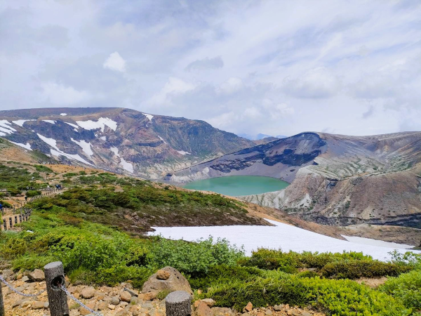 蔵王ペンション村のオープンガーデンへ 朝一番に行ったので貸し切りだったなり ![]() 10軒のペンションのお庭が解放されてるはずなんですけど、なにせ他に人が居なかったので入口が分かりやすかったこちらのペンション・スイスさんのお庭しか見れにゃかった でもローカルTVで紹介されてたのもこのお庭だけだったので、おそらく一番メインなのかなと思いやす ![]() ![]() アーチにはバラやテッセン ![]() ![]() ![]() 山を借景に ![]() ![]() ゲラニウム ![]() キバナノギョウジャニンニク ![]() ![]() キリンソウ ![]() ホタルブクロ ![]() ![]() ![]() オオムラサキツユクサ こちら ![]() ![]() ニッコウキスゲ 可愛い形の葉っぱもたくさん ![]() ![]() ![]() サラサウツギ ![]() スモークツリー ![]() オオデマリ ![]() ペンション・エプロンステージさんの塀に咲いていたニワフジ 蔵王エコーラインから蔵王ハイライン(有料)を進み、山頂レストハウス到着 ![]() そこから徒歩数分で御釜れす 御釜は日によって色がちなうので、エメラルドグリーンが観れますようにー!と願ってましたら・・・ ![]() やったーーー✌ 残雪とのコラボも観れた ![]() 肌寒いと聞いたので羽織る物を持って行きやしたが、そうでもなかったなりよ まぁ確実に下界よりは涼しかったですけども 山頂の刈田嶺神社 奥宮 にて御朱印帳と御朱印を頂きやしたよぅ ![]() (※画像お借りしました) ![]() 標高の一番高い場所にハクサンチドリ ![]() 山野草は独特の雰囲気があるので良いっすな レストハウスに戻り、2Fのレストランで名物の利久牛たんカレーパンを🥖 ![]() ![]() 大きな窓から御釜や山々を眺めながらのカレーパンは美味しぅございやした😋 お気に入りの記事を「いいね!」で応援しよう