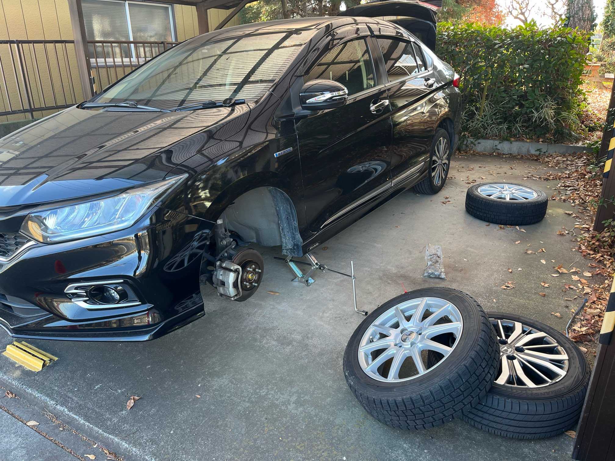 こんにちは。柴犬カイです。 今日は、自分の車のタイヤ🛞をスノータイヤに交換しました。 タイヤ交換は、スタンド等で交換すると4,000円以上かかりますし、今まで交換については、自分でやれますし、下回りやタイヤそのものが傷んでいないか確認してやっています。まず最初にタイヤのボルトを軽く緩めて、ジャッキアップして、タイヤが外れる位に上げますが、スノータイヤは、ノーマルより大きいので更に少しジャッキアップします。すると交換がスムーズにできますよ。対角線にボルトの付け替えをして取り付けます。結構タイヤは、重いので大変ですが、自分でやれば安心安全です。勿論、ボルトは、ジャッキダウンの後に、しっかりボルトを締め直しますよ。これを確実にしないと、走行中にボルトが外れる場合があるので注意してくださいね。交換が終わり、自分でスタンドに行って空気圧を確認します。タイヤ空気圧は、変化していますので必ず実行してね。疎かにすると、ハンドルが重くなったり、操作に不具合になりますので注意しましょう。これで取り敢えず冬の備えはバッチリです。 明日は、かみさんの車のタイヤを交換しましょう。 その後は、我が家の欅の落ち葉の掃除とコンポスターを使って落ち葉堆肥作りです。米糠を使って醗酵させて作ります。今日は、ここまでです。カイくんの散歩は、お姉さん達がやってくれました。♪ ポチッと押して下され。ありがとうございます♪😊。