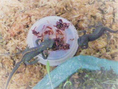 暖かくなって、動き回る事が増えたのかイモリたちの食欲も変化してきた。乾燥赤虫を水に濡らして、飼育ケースの中に置いておく。夜、見てみると食べている。えさやりが楽になる。1時間ほどして、再び見に行ってみると、よく食べている。腹がでかくなっている。どんどん成長していくのも楽しみ。ただ、水の中に入った個体は陸地へは出てこないので餌を食べた様子は無い。仕方ないのでピンセットで、水の中でゆらゆら。いくらかは食べてくれた。面倒ではあるけど、これはこれで楽しい。