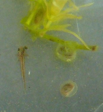 最初の産卵から約2ヶ月。今年最初の孵化。長かった。こんなに長いのは初めて。産卵後から雪が降ったりして寒い日が結構あったから、こんなにかかったのだろうか?この後、2匹目も卵から出てきた。そして3匹目も・・・・。今日は暖かい日であった。