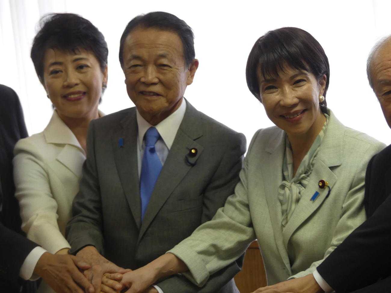 「極めて異例」麻生副総裁がキングメーカー復権 幹事長は義弟「第2次麻生政権」とやゆする声も 日刊スポーツ 2025年10月7日18時39分 自民党は7日の臨時総務会で、高市早苗総裁の選出を受けた新執行部を正式に決定した。高市氏勝利の「陰の立役者」といわれる麻生太郎氏が、副総裁に再登板。新役員による記念撮影では、笑顔のガッツポーズを披露した。(中略) 総務会で、麻生氏は「開かれた国民政党として開かれた総裁選挙を行い、新総裁が生まれた。高市早苗新総裁のもと、挙党一致、自由民主党の再生へ頑張ってまいりたい」と、あいさつした。 石破茂首相の総裁就任に伴う昨年の新役員の記念撮影には出席せず、すぐに部屋を出た。今回は写真撮影タイムが終わるまで部屋に残り、高市氏の隣で笑顔をみせ、カメラマンの注文にも応じた。 党4役は、麻生氏の義弟の鈴木俊一幹事長、麻生派の有村治子総務会長、総裁選で4位だった小林鷹之政調会長、高市氏の陣営幹部を務めた古屋圭司選挙対策委員長。副総裁と幹事長が同じ派閥で、しかも姻戚関係なのは「極めて異例」(自民党関係者)だという。 麻生氏は首相時代、当時の民主党に政権を奪われ1年で退陣した。麻生氏がキングメーカーとして本格復権を果たした形の今回の総裁選を踏まえた人事の顔ぶれは、「第2次麻生政権」とやゆする声もある。 【日刊スポーツ;元記事はこちらへ】 ◆「やゆする声もある」ではなくてコレは明らかに第二次アホウ政権ですよ。党内政権交代に勝利して御満悦の笑顔がなんとも気持ち悪いです。せっかくの女性初の総裁なのに世間はけっこう皮肉な見方をしているようです。政治の世界は適材適所よりも論功行賞が優先する渡世。しかしあまりにも露骨な非主流派復権劇で評判は最悪ですから。ニタラニタラ笑ってる場合じゃないですね。