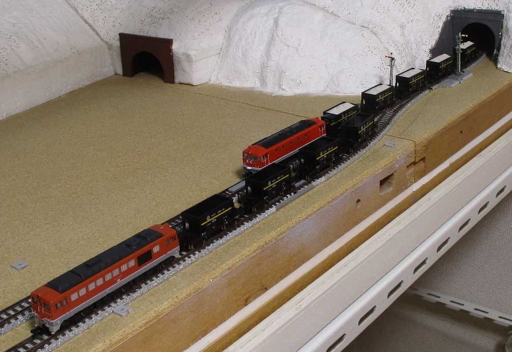 まぁ実際は機関車が重連のまんま、編成を9両+9両に二分割してホッパーへの入れ換えを行っていたので、
