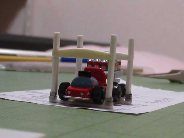 輪止めが付いたパーツを含む、仮り組みをしたところで再度検討会です(苦笑)