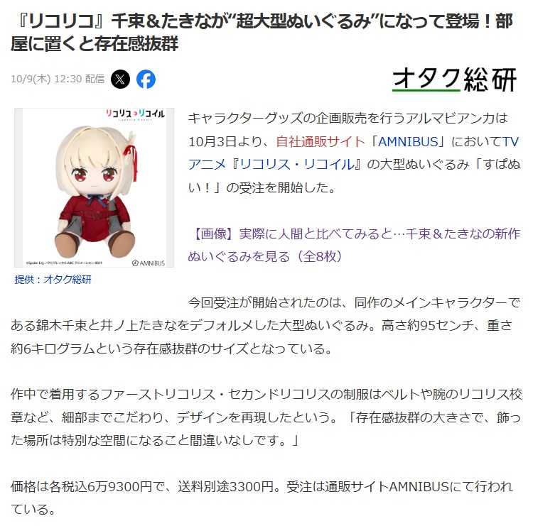 昨晩休みということもあり、いつも見れない時間にみんな大好きSTV提供の 札幌駅ライブカメラを眺めていたら、同時刻で札幌を発車するのに、 並ぶことはほぼ無いことで有名な特急すずらんと特急宗谷が、いうても顔どうしが ピタリと並んだわけではないけれど、ここまで並びましたwww とは全く関係ないのですが(爆) アニメ系のトピックを見ていたら パッと見はクレーンゲームなんかによくある、ぬいぐるみにフィギュアかな? というイメージなんですけれど ![]() デカっ! エ? アニメグッズって今はそういう方向なんでしょうか!? まぁ確かに作業前、駅で終電車が出ていくのを待っている時に、何かの特等でも当たったのか 超~ でっかいぬいぐるみを抱えて帰るねーさんなんかをちょくちょく見かけはしていましたが(笑) 因みに ![]() サイズもさることながら、おねだんもなかなかマーベラス 個人的にはこれらでっかいねーさんたちを製造しているところを見学してみたいですねー フィギュアならこれを抜く超巨大な “型” があるのか、それとも3Dプリンターで 猛烈な時間をかけて出力されるのか、ぬいぐるみならこの着ぐるみみたいなサイズの中に 延々と “詰め物” をするところとか。特に出荷待ちでずらーっと並んでいる状況なんか きっと壮観なんじゃないかとwww そもそもずらーっと並ぶほど注文が入るのか問題がありますが そんなでっかいねーさんといえば ![]() こっちのねーさんは結局バラバラにされちゃったんですね(爆) 流石に身長6メートルのねーさんを自宅にお迎えなんて猛者は居ないと思うけれど 果たして “再就職先” が何処になるのかが気になりつつの模型工作は ![]() R13形コンテナの番号修正、やっと撤去すべきものは全て撤去できたので 今回からまた貼り付け工作です 「4」だけ切り出してセロテープで拾って位置出ししての貼り付け、 ![]() この工程も久々だわというなかでの施工結果。 よーく見ると若干、左に傾いているように見えなくもないけれど もうこれでOKでいいでしょう(苦笑) サンダーバード2号コンテナの修理は割れ目のひとつから 軸を修理したハッチを挟み込み ![]() 割れ目にはやはりタミヤの流し込みタイプを浸透させ、 ハッチにまで流れて固着してしまわないよう絶対安静にしての出勤です お気に入りの記事を「いいね!」で応援しよう