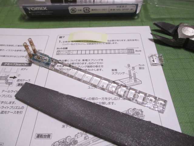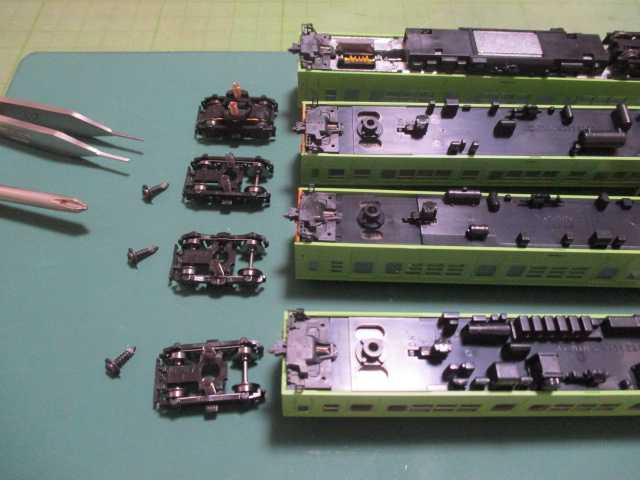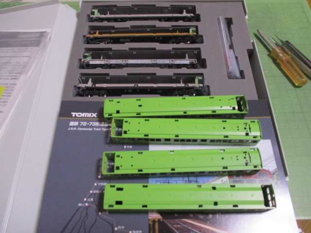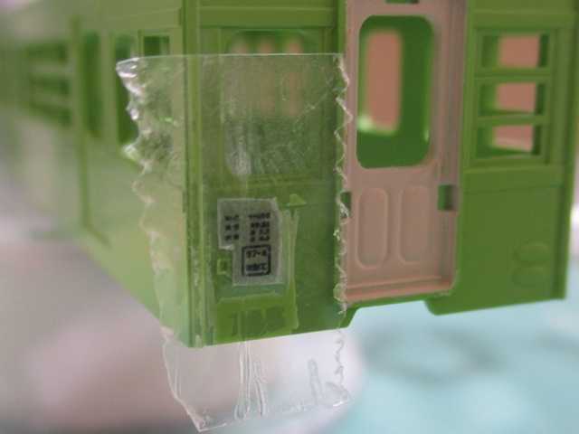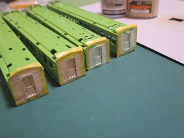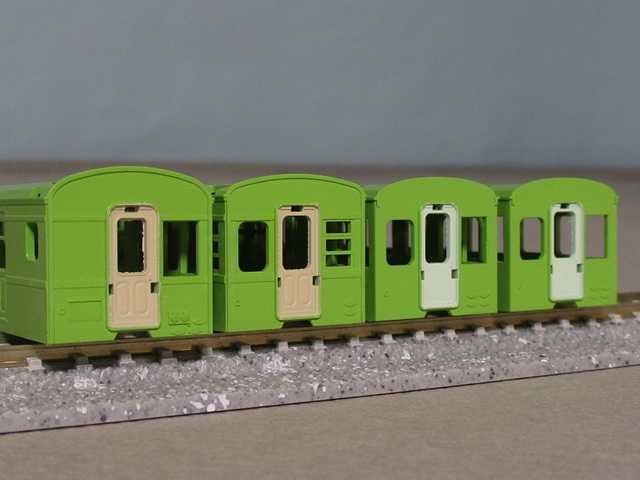 自分もひとつ乗っかろうということでの “鉄道模型納め” なんてブチ上げてみました とはいえ24時間年中無休営業のコンビニ同様、一旦納めはするものの あくまで形式上で、積みプラ解消するまで未来永劫、連日年中無休で工作は続くのですが その前に... 昨日割れ目に盛り付けたサーフェイサーを、スポンジヤスリの水研ぎで整形。 背面を中心に緑2号をエアブラシ塗装したところで 先ずは24時間戦えますか? じゃないけれど なんかしらで貰ったチオビタでファイト一発、景気付けをしてw ここからは “納める” ために工作してはブログ記入の耐久レース そんな課題、実は到着したのは先週だったのですが、積み残し案件をキリよく片付けてからだなと そのまま放置プレーになっていた結構デカいブツ。 ![]() 正直、このクラスの製品となると、いくら量販店割引価格になっても もはや庶民の自分では絶対手が届かないので、最近すっかりオトクイサマになっている 模型テツなら知らない人は居ない、超有名中古模型店からの格安購入です。 安価で出るのを虎視眈々と狙ってた とはいえヤフオクではないので ニコチン臭爆死案件 になることはありません故(苦笑) って、また車両増やしているんカーイ!!! なんですけれど、まぁ赤い爺さんのアレというか、 これで本年度の総厄払いというか、 そう。 酉の市のデカい熊手的な? www セット内容はこんな感じで、恐らく今や可部線沿線の人でもこんな電車知らねーよ! かとは思いますが個人的に乗りテツ時代、富山港線や鶴見線とともに引退直前のギリギリで乗れた 数少ない旧型国電のひとつなので、その決定版とも言えるこの製品はいつかはクラウンじゃないけれど どうしても外せなかったんですよね さらにハイグレード仕様にしては付属パーツが少ないことと ![]() なんとプロトタイプ調査やインレタ工作で悪戦苦闘する車番や所属、ATC表記が印刷済み! これは短期間完成を目指す “納め案件” にちょうど良いのではという目論見ですw そして行先幕と運行番号はパーツ差し込み方式、つまりステッカーを貼るのと違って後々変更可能。 こういうところは流石ハイグレード仕様だわと思ったのですが、 クハの前面に付くこのサボ受けパーツ ![]() クハ79466にはDパーツが使えるものの、クハ79214は横桟なのでCパーツは使えないという罠が(失笑) とはいえ今回は納めなくちゃならないから工期最優先! できることからとっとと進めるとして ![]() 床下系のパーツ、ATS車上子と排障器を切り出して取り付け 組み戻す時の参考にする為のトレーラー車分解状況 ※クハ79466は構造が動力車と似ているので取説通りで分解できるのですが、 他は台車を外して床下と室内パーツを分離しながらのほうが分解しやすかったです(窓パーツの爪がキツい) ![]() 車体パーツのみ残して他は一旦収納。 ここからは お盆休みに工作した同じくハイグレード仕様な気動車 と同様の工作をしていきます。 ![]() 各車妻面の貫通扉を残してテープとゾルでマスキング、現物合わせで穴を開けたダンボールにセロテープで仮止め クモハ車にはグリーンマックス鉄道カラーの淡緑1号、クハ車にはクレオスのセールカラーをエアブラシ塗装。 施工状況。 ググっていた時、旧国木製内装の扉の色はセールカラーが良いというのを鵜呑みにしちゃったのですが、 実際仕上がりを見ると自分の中のイメージよりちょっと濃いかも? でも逆に淡緑1号が自分の中のイメージより薄いので、 むしろこれくらい差が無いと、おんなじ色に見えてしまうだろうから逆にOKってことでww ![]() 一旦小休止w ![]() というか普段はお菓子のブランドなんて全く気にしていない自分なのですが ケーキにつけ昨日のマカロンにつけ、なんと天下の不二家製だったんですね(笑) ここからがハードなクエストです って車番等が印刷済みだからインレタ転写工作をやらなくていいわ~ じゃなかったの? なんですけれど、やはりここもお盆休みに整備した気動車に合わせようと一念発起。 てゆうか103系なんだけれど? 大丈夫w いくら視力が良くても肉眼では読めるのはせいぜい吹田工くらいで、他まで判読出来る人なんてたぶん居ないから(爆) まぁ工場も幡生工あたりにするのが正解なのかもですが、ギリ西日本地区ってことで妥協です 何より「検査表記がある」ってことが重要なのでwww ![]() 切り出してセロテープで拾い、位置出しをしてバーニシャでこすって転写。 ただ、今回トイレ付きのクハの転写位置がわからず、ググっても妻面なんてマニアックな写真を 撮ってくれている勇者も居ない有様だったのですが ![]() なんと予想すらしなかった思わぬところにチラッと写っていて助かりました。 一見何も関係無いようなショットでも、見過ごすことなくつぶさに隅々まで観察するべきですね(笑) 位置が判明したので後は手を動かすだけなのですがせっかくというか この文字がそれぞれ欠損して使えないインレタを有効活用しようと、右側からは形式重量部分 左側
