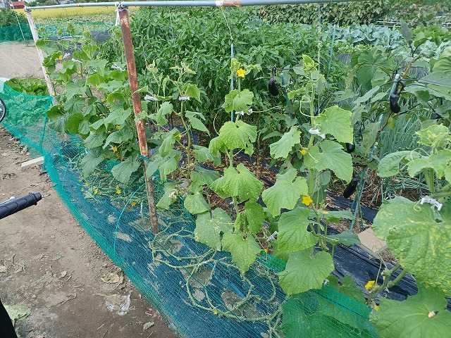 秋採りキュウリは、這わせた物と蔓おろし栽培をやっています。