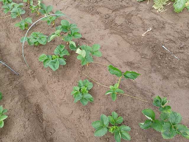 定植したイチゴも根付いたようなので寒冷紗を外しました。