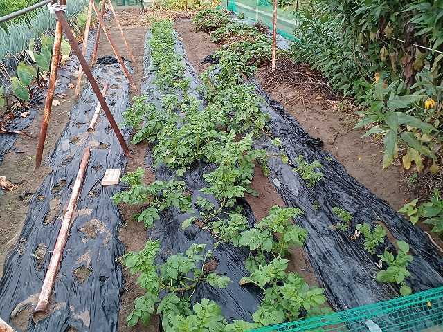 ![]() ランナーもよく出始めたので取り除きました。 炭疽病の葉もなく、今は葉が綺麗です。 ![]() メークインは大きくなってきましたが、最初に芽が出た物は倒れてしまっています。 ![]() ![]() これでは株元がむき出しになるので芋に光が当たりそうです。 後から芽が出た物は今の所倒れず葉も多くなっています。 ![]() 気温が下がり始めたので、後から植えた物にビニトンをしました。 倒れた葉はそのままです。 ![]() ![]() ランキングに参加しています。 クリックよろしくお願いします。 にほんブログ村