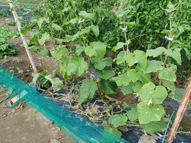 週末に掛けて雨が多いので、なかなか作業がはかどりません。 昨日から孫は1泊の修学旅行で京都、奈良に行っています。 雨に降られないといいんですが。 秋採りのキュウリの蔓おろし栽培ですが、半分の葉の色が特に悪くなり、 枯れている物が出てきています。 ![]() 後の半分はまだましですが、寒くなってきているのでそろそろ終わりそうです。 ![]() この違いは何なんでしょうね。 ネコブセンチュウかもしれません。 秋採りのカボチャも防除の甲斐なくウドンコ病が進行し葉がなくなっています。 ![]() 実がむき出しになってしまいました。 ![]() ![]() へたがコルク状になり、爪が灰らなくなっていたので2個収穫しました。 残り2個も近々収穫してしまう予定です。 ![]() ランキングに参加しています。 クリックよろしくお願いします。 にほんブログ村