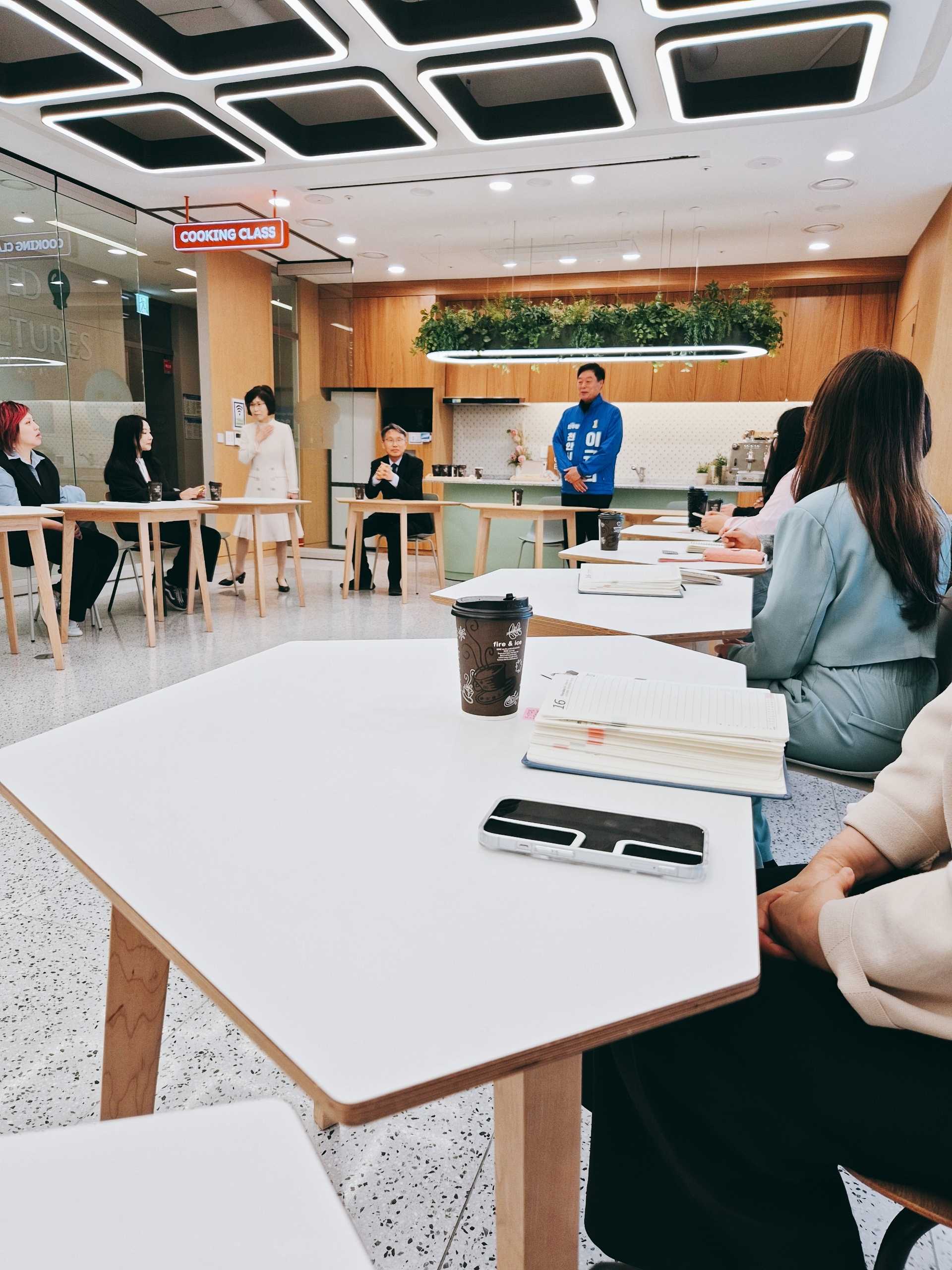 韓国は、6月3日に地方選挙がある。この時期になると、田舎の郡議員をやってて若くして亡くなってしまった義兄のことを思い出す。まあ@@ この記事もフォト蔵のせいで写真が見られないじゃないですかー!(←クリック)今も元気だったら、何をやっていたかなぁ?道の議員なんかを目指してたのかも。さて、まだ各地の候補者は決定してはいないんだけど、忠清南道の教育監の「予備候補」と天安市長の「予備候補」との懇談会があるからと、多文化センターの職員さんに誘われ、行ってきたよ。この職員さんは、はんらと仲良しのNさんだからだ。「予備候補」というのは、選挙に出馬する予定の人、立候補をする予定の人、という意味だ。青い人が与党の天安市長の予備候補者。座ってる人が教育監の予備候補者。この2人は同じ中学校の同窓で親しい仲なんだそう。多文化センターから、つまり、在韓外国人は17人参加し、職員さんが2名、予備候補の付き添いが2名ほどだった。お二人共忙しいのでしょう。10時から始まって、あっという間に終わってしまった。笑。それでも、「天安の多文化センターが狭くて不便。もっといろんなことをやるにはもっと広いスペースが必要だ」とみんなが訴えたところ、「もし私が市長になったら、多文化センター専用のビルを1つ建てましょう」と約束(公約?)してくれた。もしこの方が当選したら、ということだけど。笑。今、多文化センターの建物には1日300人くらいが出入りしてるんだそう。利用者数は、年間、1万3千人もいるそうだ。それなのに、ビルの一部を使ってるだけだから、やっぱり狭すぎるよね。参加費。笑。おいしそうな農協キムチ2.5キロをいただきました。さて、はんらはこの日、午後にも予定があり、仲良しのNさんとおしゃべりしてから一緒にお昼ご飯を食べに行った。ベトナム人がやってる多文化食堂。ビーフピラフ。バインセオ。食べ方が面白い。薄いライスペーパーにサンチュ(ちしゃ)とエゴマの葉っぱを敷きその上にバインセオを置いてクルクル巻いて、タレに付けて食べる。おいしい~!Nさんのおごりだった。ごちそうさま~!次ははんらがおごりま~す。