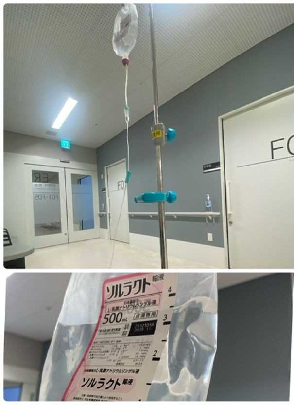 ER(救急救命室)の廊下で点滴をしてもらい待ちました。