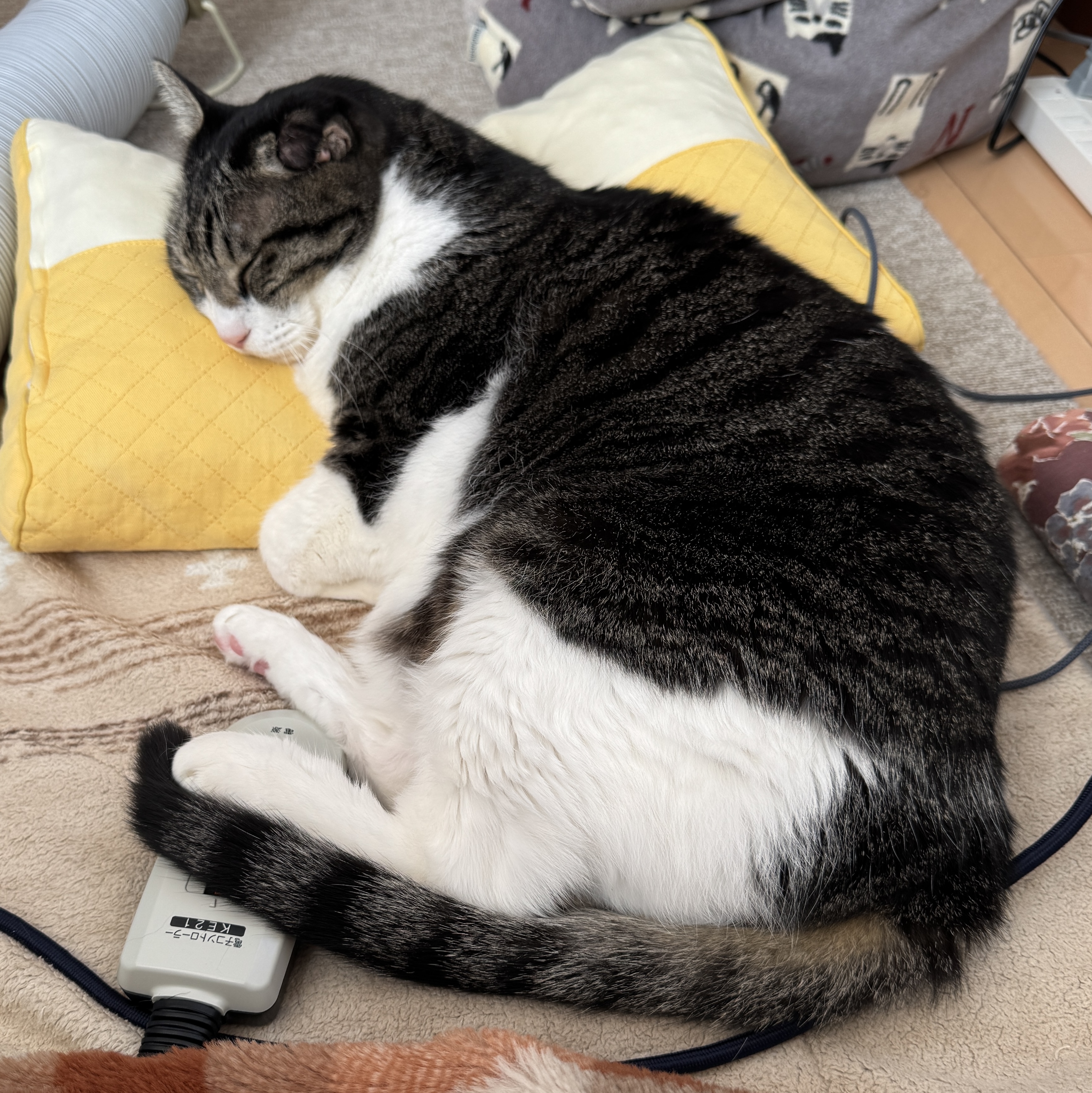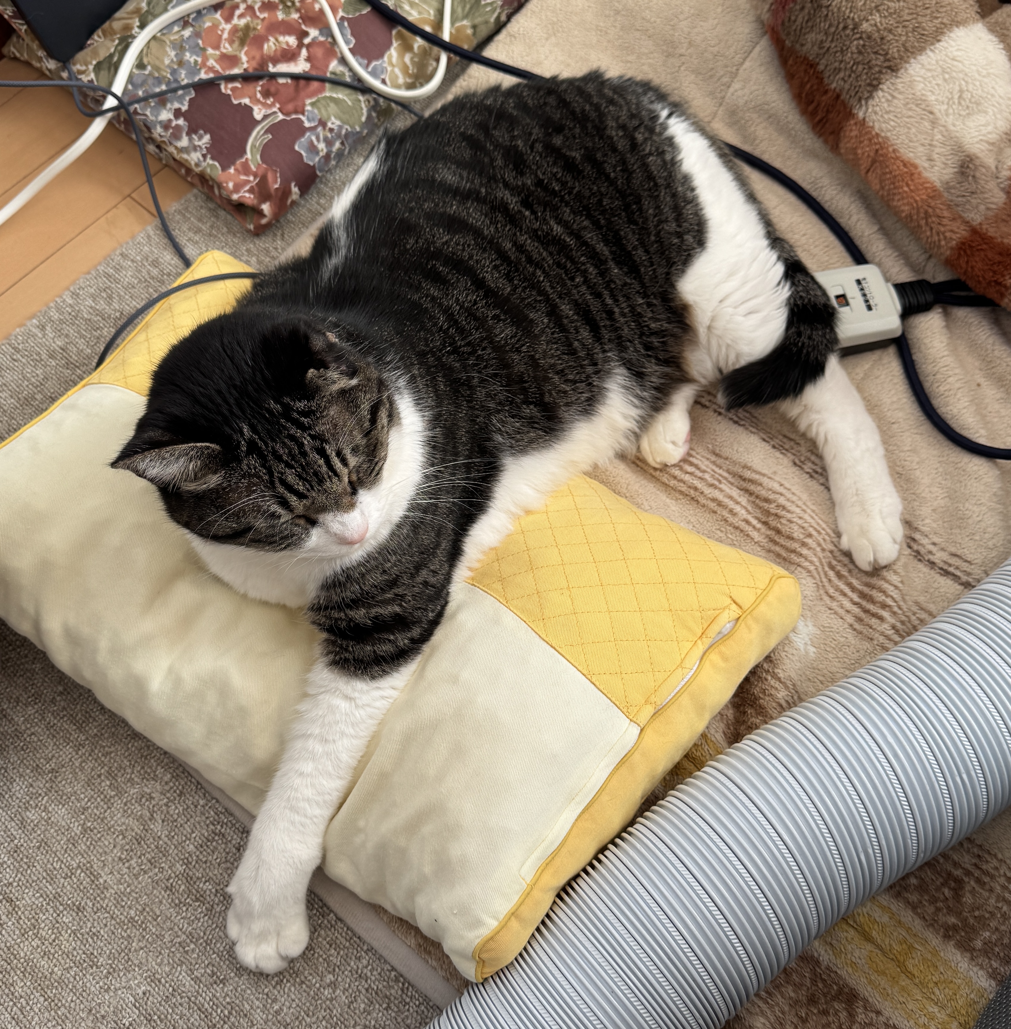 木曜日を迎えた ばんぶー です。 今日は定休日ですよ! 平日休みって嬉しいですよね。 今日は昨日までの不摂生を反省してサウナでも行ってきましょうかね。 さて、本日のネタは久しぶりにサスケ様です。 ![]() こたつに入っていたんだけど熱くなって出てきたの図です。 ちゃんと枕に寄りかかっていますね。 ![]() 反対側から。 あんちょに巻き付いてる尻尾さんが可愛いですよね。 雪国の定番、温風ヒーターの熱をコタツに入れるパイプがありますね。 これって便利なんですよ。 すぐコタツがあったまります。 さあここで宣伝だ。 何? ペットのお世話グッズを持っていないって?? ↑から注文すると良いんだぜ! グッズを買うとペット喜ぶ、ばんぶーさんも喜ぶ。 続き。 カメラを向けていたら姿勢を変えてきました。 ![]() 完全に寝に入ってしまいました。 最近歳のせいか、1日の大半を寝て過ごしています。 だんだん痩せてきていますが、食欲は旺盛です。 これからも元気で長生きしてください。 ![]() ぐっすり寝てますね。 このまましばらくほっときましょう。 いい夢を見てください。 ってことでサスケ様の日常でした。 さて、平日休みが嬉しい木曜日。 浮かれずテキトーに頑張りますか。 ほなほなノシ お気に入りの記事を「いいね!」で応援しよう