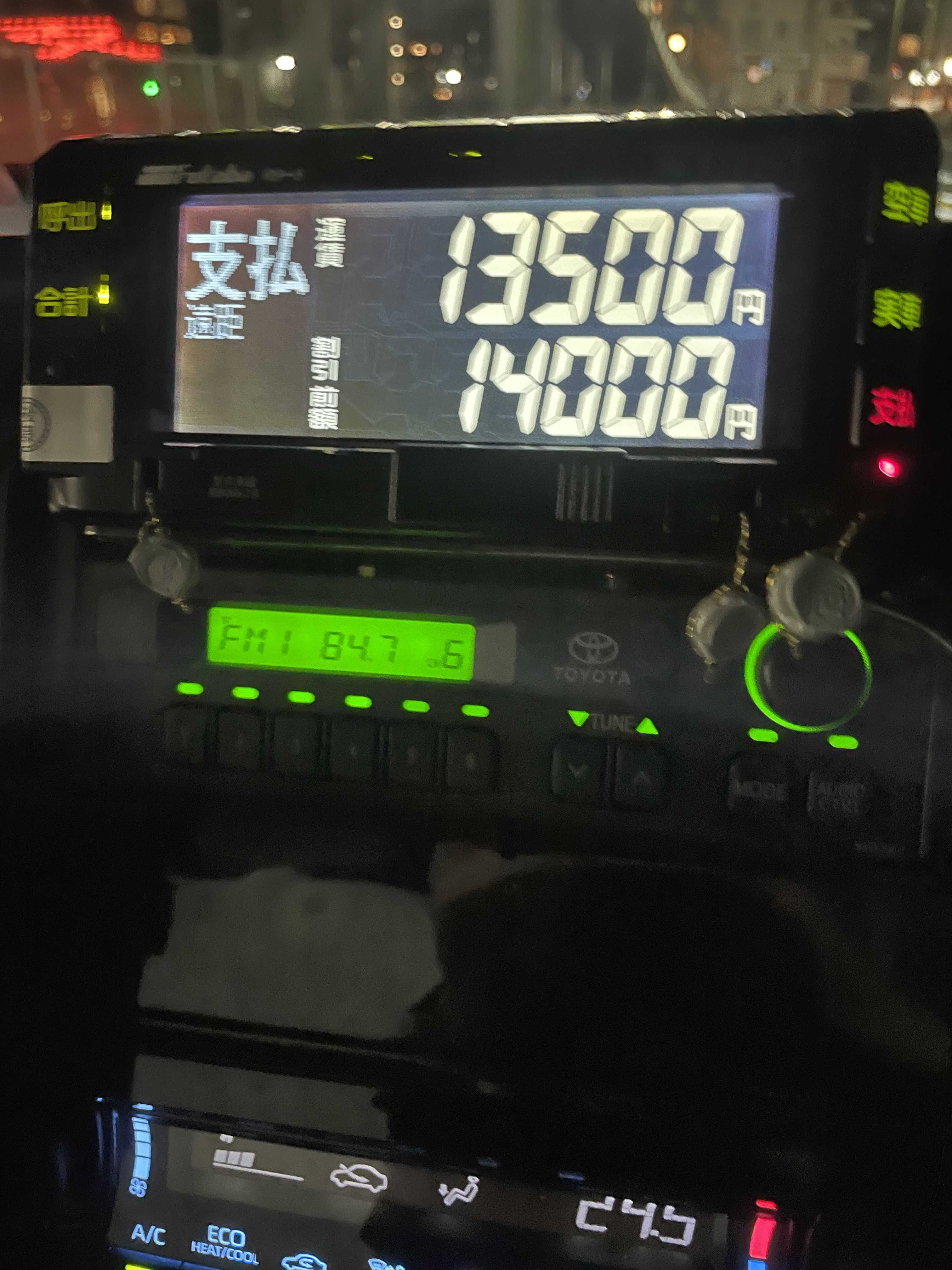 点呼20:32:20 2026年1月18日曜日1.20:50永田南ー新横浜1 6300 Uber2.21:35新横浜二丁目ー岸根高校入口 1000 アリーナ通り3.21:50京急東神奈川駅ー横浜倉庫 1300 GO4.22:10〜50横浜東口ー掃部山 1100 20台5.23:20保土ヶ谷西口ー法泉2 1900 2台6.23:45保土ヶ谷西口ー7台6.0:00〜05保土ヶ谷東口ー元久保町🚏 700 3台7.0:15クリオ保土ヶ谷ー上矢部町 5000 GO8.0:45東戸塚東口ー大船駅東口バスロータリー入口 5400 1組9.1:50〜3:10横浜西口ー藤棚県営アパート 1500 20台全104km 乗45km 9回 迎車3回 営収¥220002026年1月タクシー売上,円12/21日曜日,4391022月曜日,5197024水曜日,3936025木曜日,4491026金曜日,8999027土曜日,6763028日曜日,6202029月曜日,51090元旦木曜日,666601/2金曜日,617303土曜日,507304日曜日,476805月曜日,142707水曜日,361708木曜日,532809金曜日,4601010土曜日,4591011日曜日,5298014水曜日,2755015木曜日,2055016金曜日,4688017土曜日,5541018日曜日,22000合計,1098690