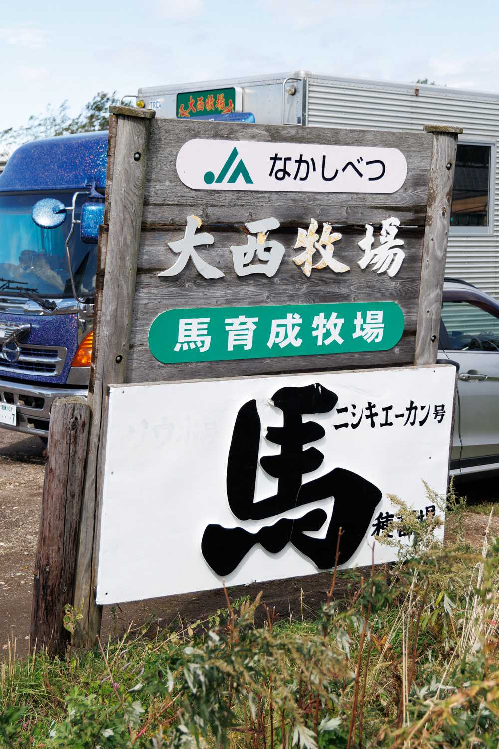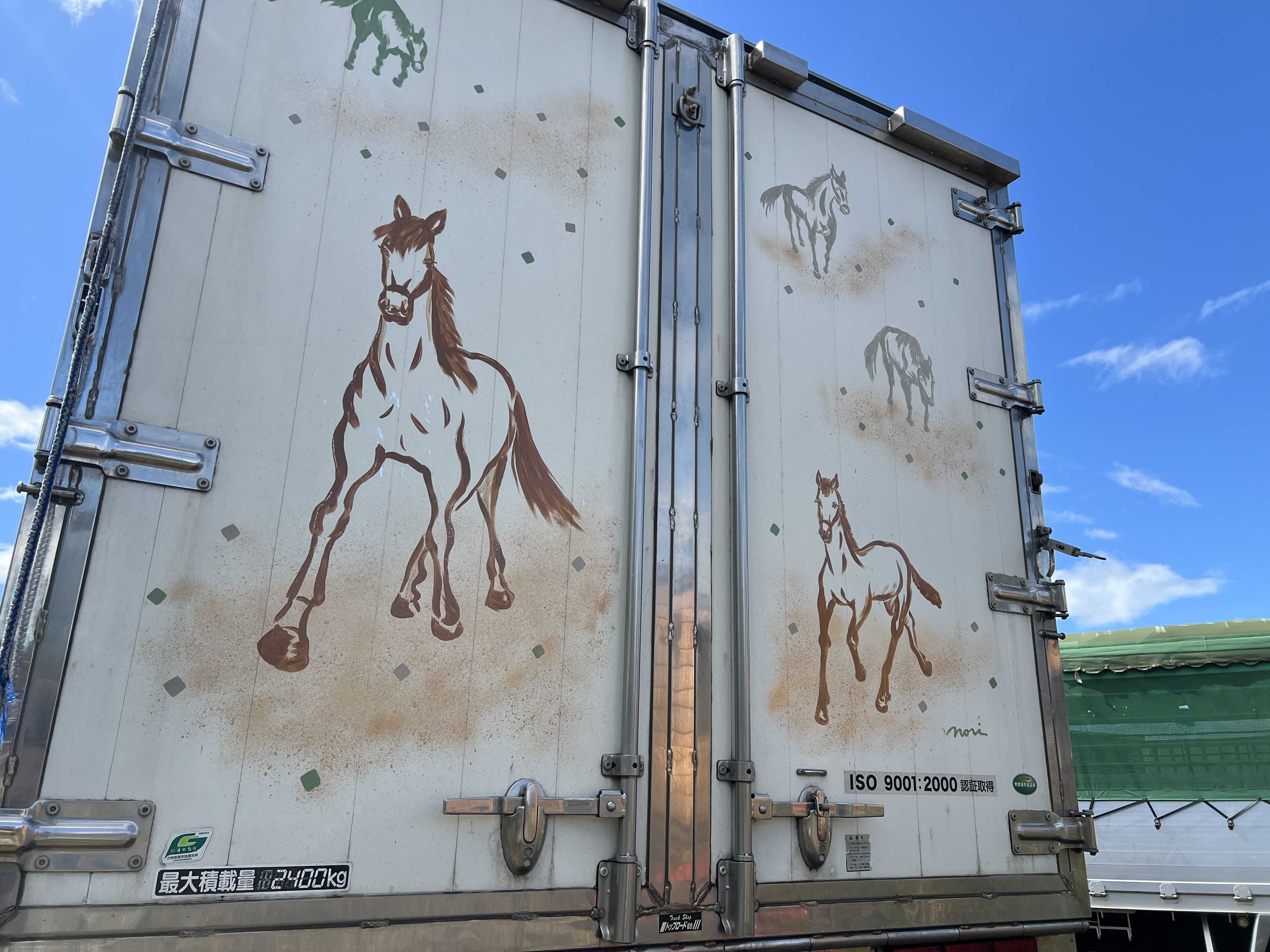 20日が騎乗、21日がばん馬ですが21日は荒天予報のため中止。 20日は駆歩や速歩レース、繫駕競走が行われました。 地元の愛好者や浦河町のポニー少年団などが参加。道外からも数人いましたよ! ![]() ![]() 二輪馬車に乗る繫駕は、日本では唯一の開催となりました。 ![]() ![]() 20日は、いつものように別海町内にいるキタノキセキに会ってきました。 ![]() ![]() 名牝アンローズの息子。今年はイワキヘキレキ、イワキマッシグラの2頭が能検1着入線でデビューし、9月27日にマッシグラが産駒初勝利! 父さんやったね~! この日はほかにもキタノキセキの仔たちに会わせていただきましたが、 父と同じような星が額にある馬が多いんですよね。 イワキマッシグラなんてほんとそっくり!! 休みとなった日曜は、風雨が落ち着いてから中標津の大西牧場さんにお邪魔しました。 ニシキエーカンがいます。2歳では牝馬のパワーシンデレラが頑張っていますね。 ![]() ![]() 看板がかわいいです。馬運車もおしゃれなイラストが描かれています。 標津町の和田さんという方のイラストだそうです。 ![]() ![]() ニシキエーカンは放牧して英気を養っているとのことで会えず… プレザントウェーも奥でお休み中。 3頭いる種馬のうち、コウシュハボブに会わせていただきました。 ![]() ![]() 初年度産駒が1歳のコウシュハボブ。 銀河賞5着、スターライト特別を勝利するほかA1~B1クラスで活躍しました。 父はナリタボブサップ。種付けも上手で、発情がない馬には乗らず、発情が来ていれば車の中からアピールするそうです。 子馬も小さく出て、大きく成長しているといい、今後を楽しみにしている様子でした。 草競馬も含め、中標津や別海など、根室管内はばん馬以外にも、乗用馬やドサンコなど、いろいろな種類の馬がいる印象です。 昔ながらの馬と暮らす景色が見られるようで、とても好きな地域です。 ![]() 取材/小久保友香・小久保巌義 お気に入りの記事を「いいね!」で応援しよう